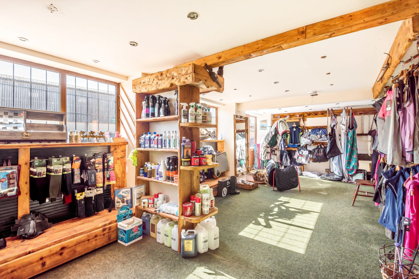 There is a ground floor tack and gift shop selling a range of equestrian products and gifts. Stairs lead to a party room with a bar.