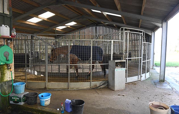 All the gear: Empshill Farm in Gloucestershire, where Giovanni Ugolotti and Kathryn Robinson rent 16 looseboxes, belongs to the Tew family. Additionally, it boasts ample neat post-and-rail fenced turnout paddocks, a lunge pen and a 1.2-mile gallop