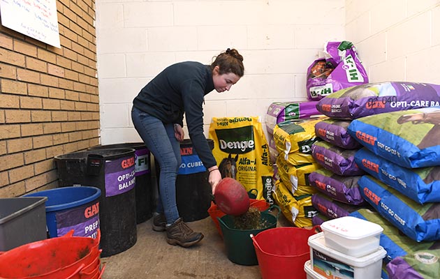 Early start: the day kicks off at 7am as head girl Sophie Richardson gets the feeds ready