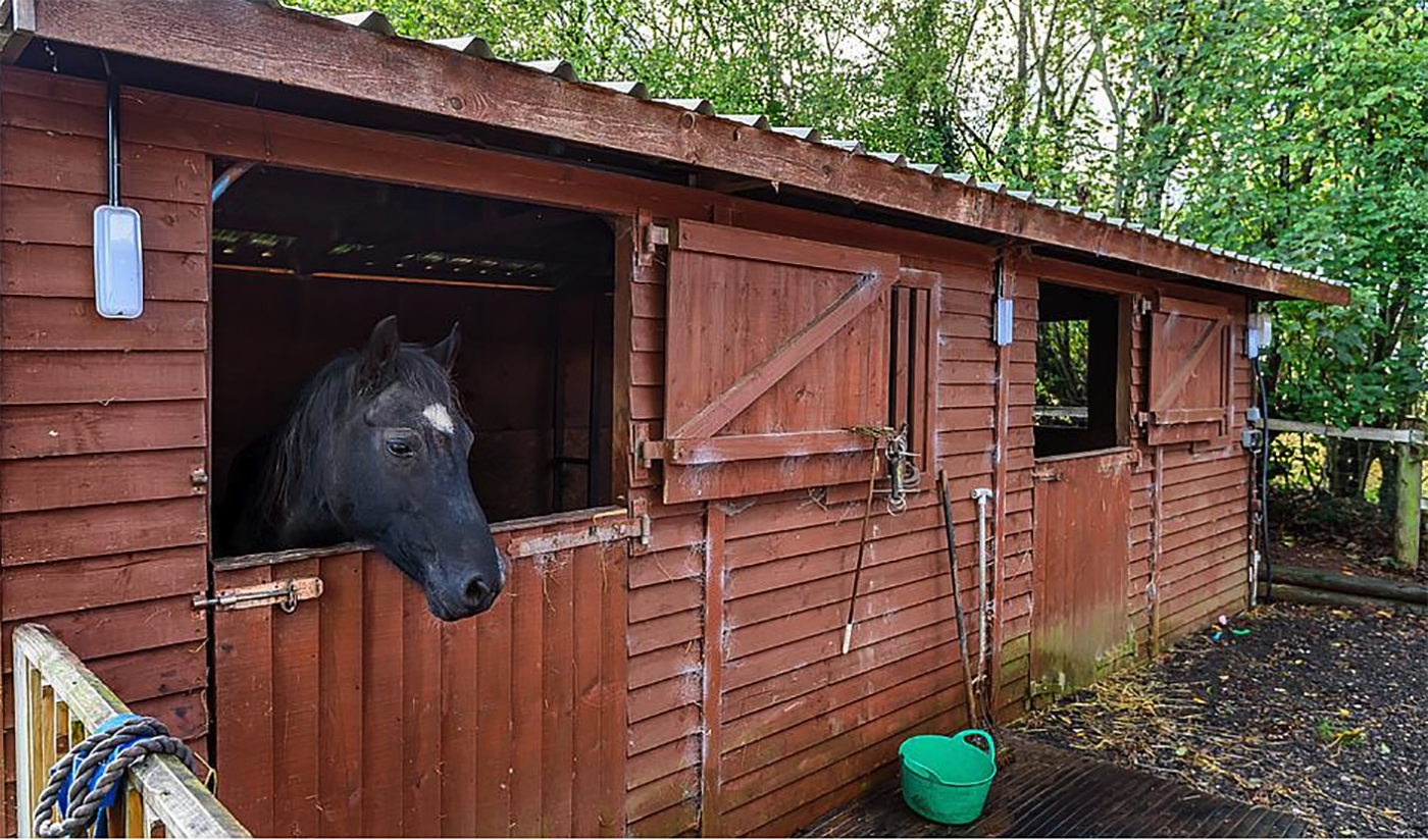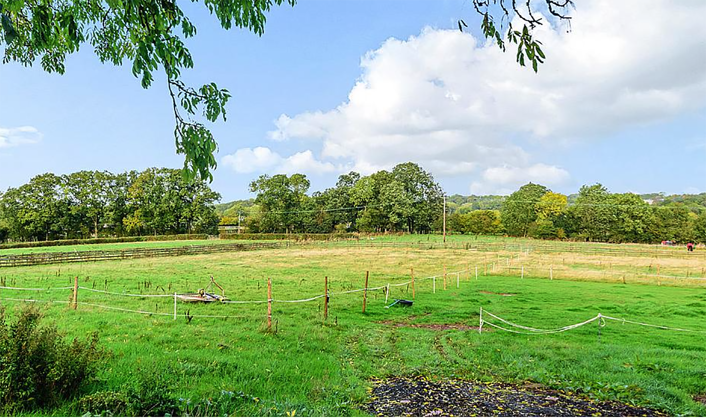 The three acres of land includes paddocks for grazing which have been divided by electric fencing. This large field lies beyond the stables in one excellent level square paddock part enclosed with post and rail fencing with water supply to a tap.