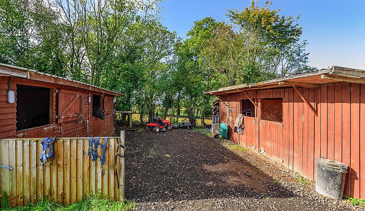 Set on the fringe of a quaint countryside village is this spacious detached family house with equestrian facilities, including land and stables.