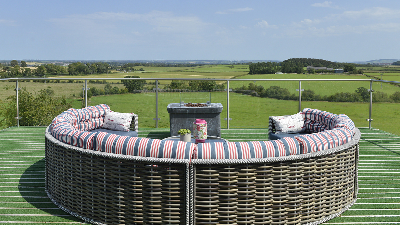 The farmhouse accommodation is arranged around a pretty courtyard and contains a large open plan kitchen/family/dining room with bi-fold doors, opening onto a large terrace that makes the most of the views.