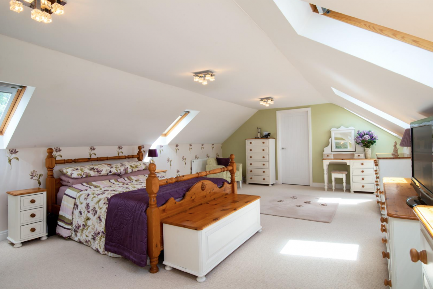 Upstairs are five bedrooms and the family bathroom. The guest bedroom boasts en-suite facilities and the master has an en-suite and a separate dressing room.