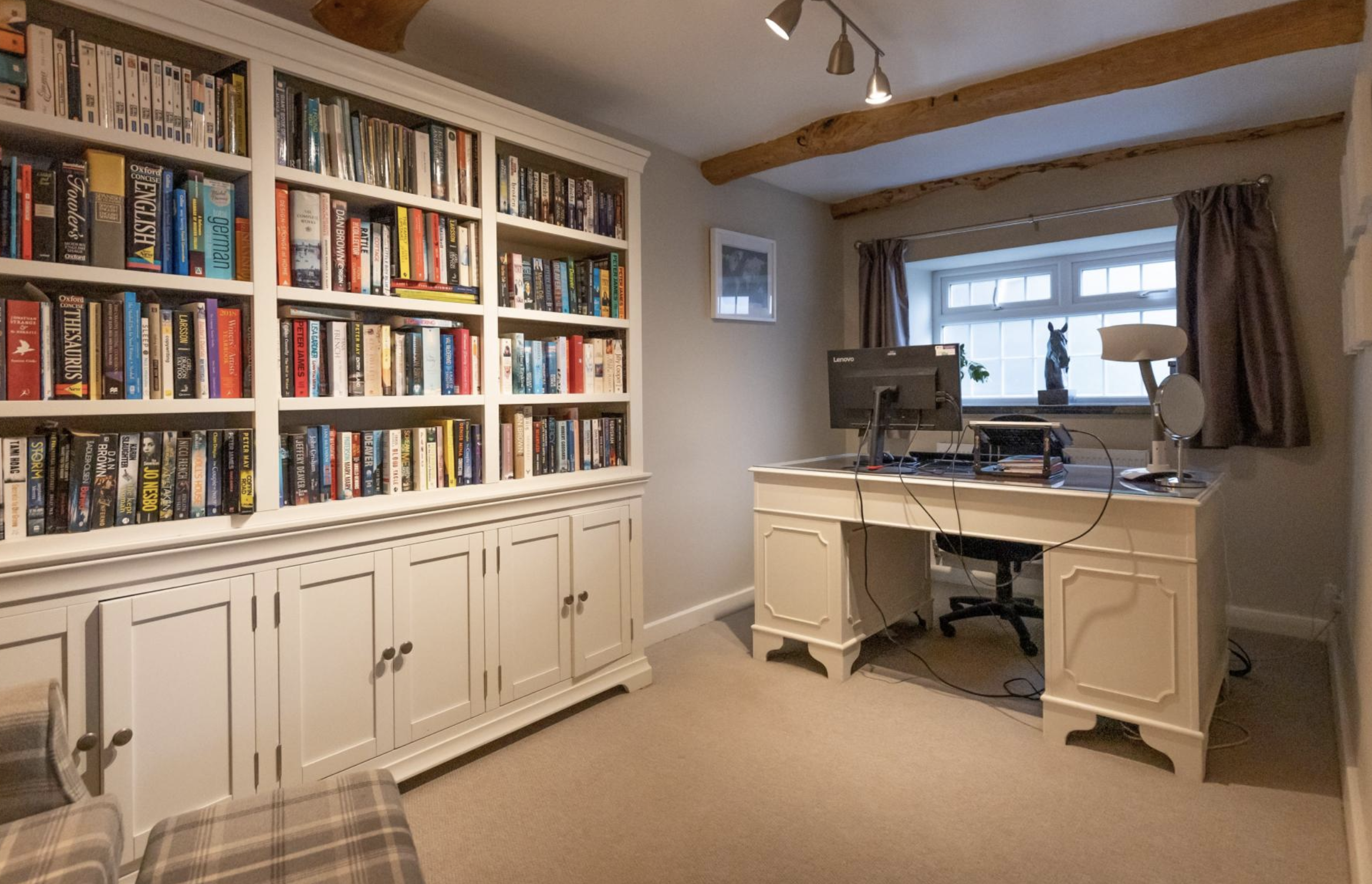 The adjoining dining area has doors out to the garden terrace. The study at the rear could also be used as the fifth bedroom.