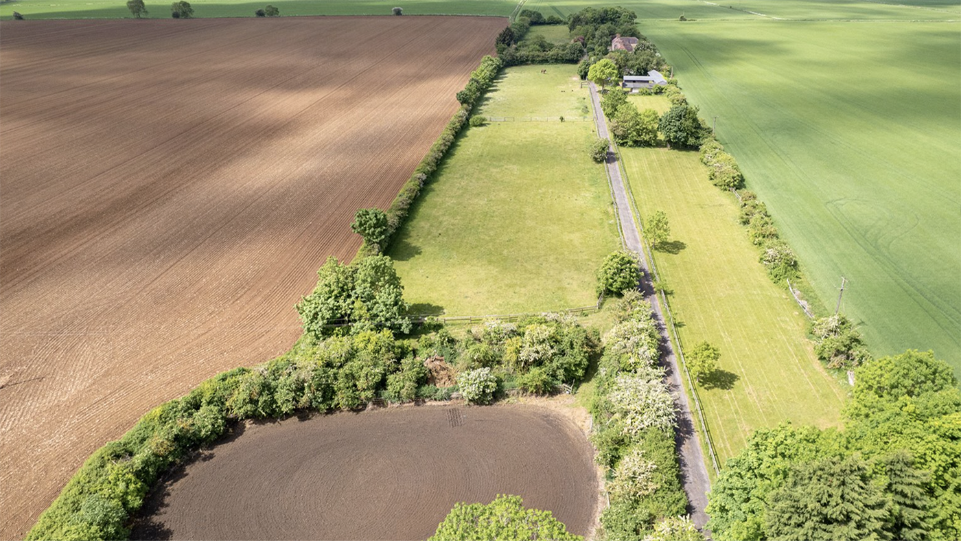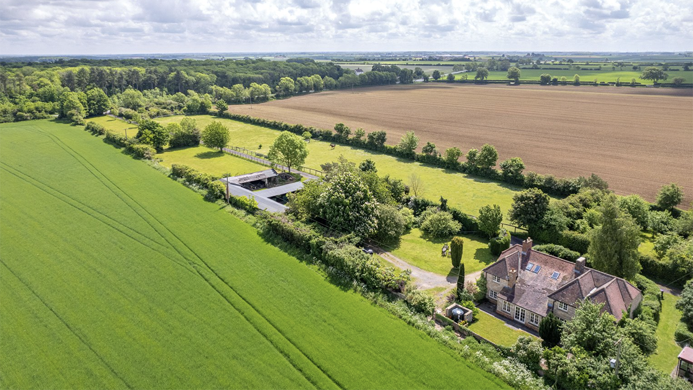 1 Hare Park Cottages can be found on the outskirts of the Lincolnshire village of Navenby, which is 10 minutes south of Lincoln. The home is one of a pair of houses down a long, gated drive off the A15 to the west.
