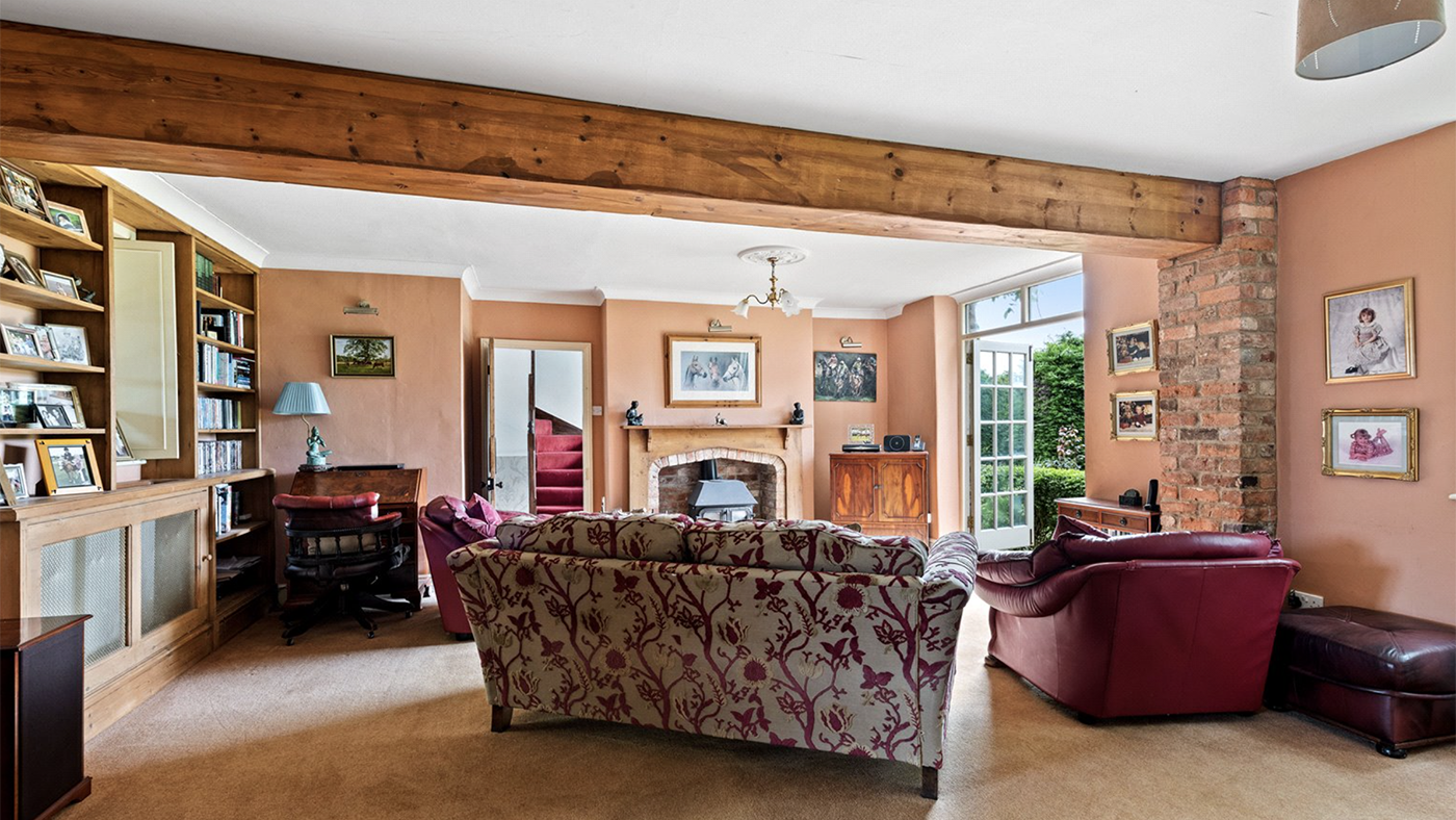 The home welcomes lots of natural light. The sitting room has French doors opening to the garden.
