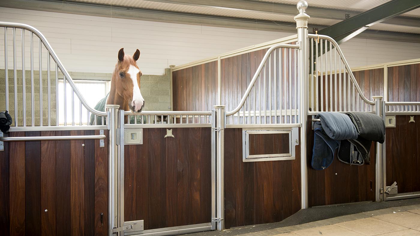 Vivaldi Du Dom in his spacious stable in the American barn layout.