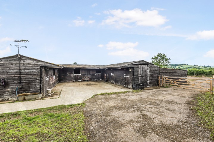 There is a timber stable block comprising seven loose boxes and a feed store/tack room situated around a concrete yard area with mains electricity and water.