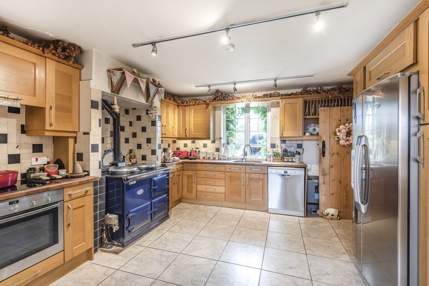 Check out this country-style kitchen complete with a range of fitted floor and wall cupboards, tiled flooring and an oil-fired AGA.