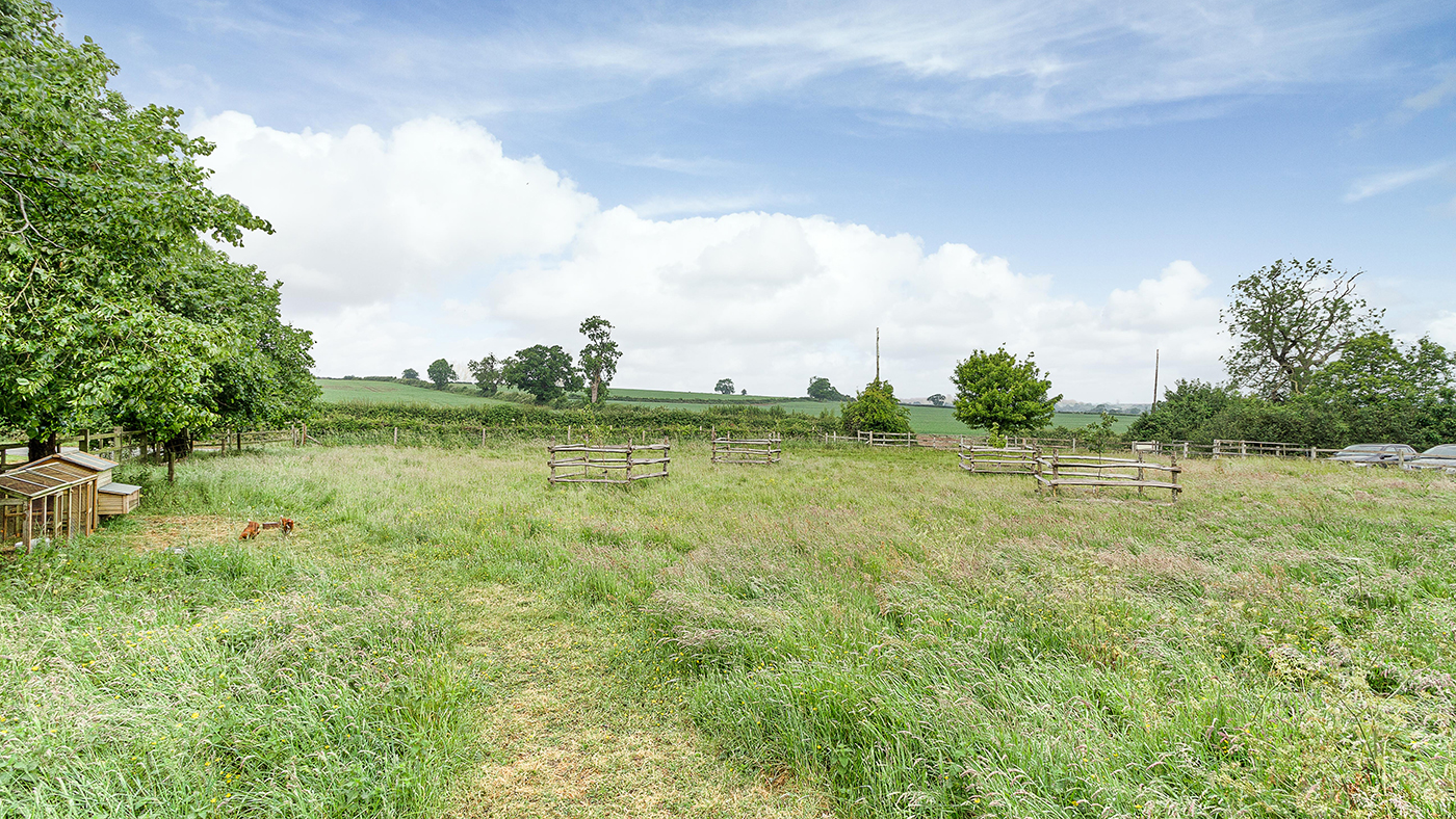 On its southern side, the farmhouse has a large garden, predominantly laid to lawn, with a brick paved seating area for outside dining, plenty of mature fruit trees and a large vegetable patch. There is also a gateway from the garden through into one of the paddocks.