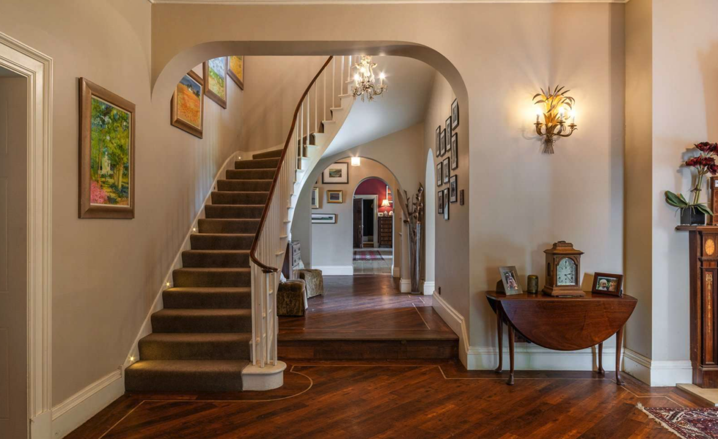 The back stair hall connects to the oldest part of the house. It dates back to 1770 and was formerly a dairy that has since been converted to a single-storey reception room known as the Long Room.