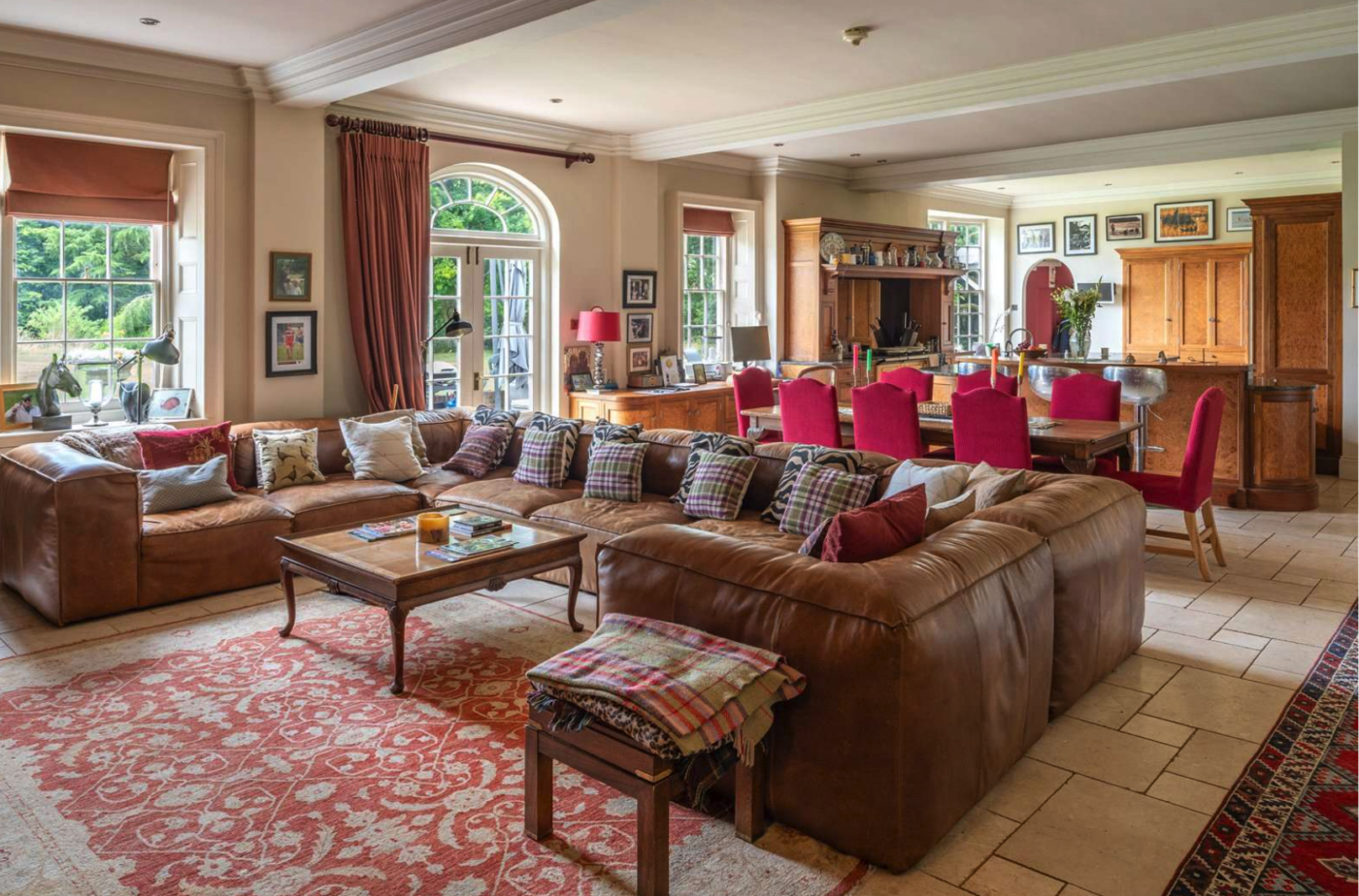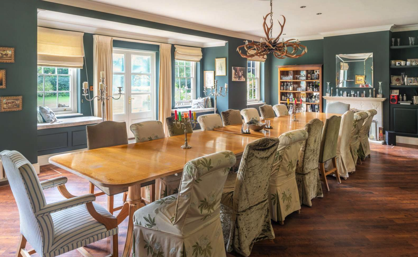 The kitchen and sitting room lead to the formal dining room, where there is space for up to 20 guests.