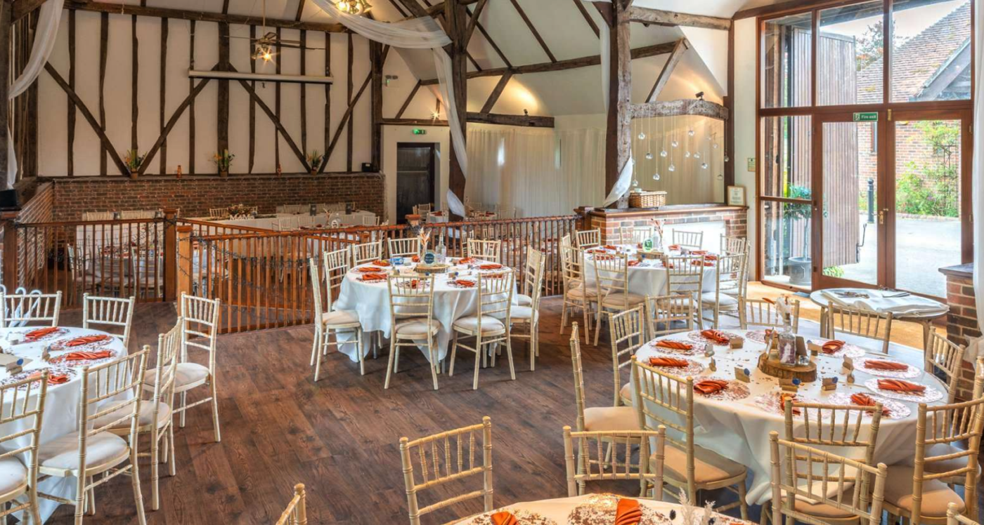 The current owners use the tythe barn, with its 120 capacity, kitchen, bar area, toilets and mezzanine, along with the gardens and grounds, as part of their wedding business. Hillfields plays host to 60–70 weddings a year – Olympic dressage rider Spencer Wilton and partner Darren Hicks tied the knot here in 2018.