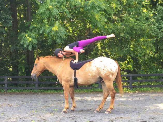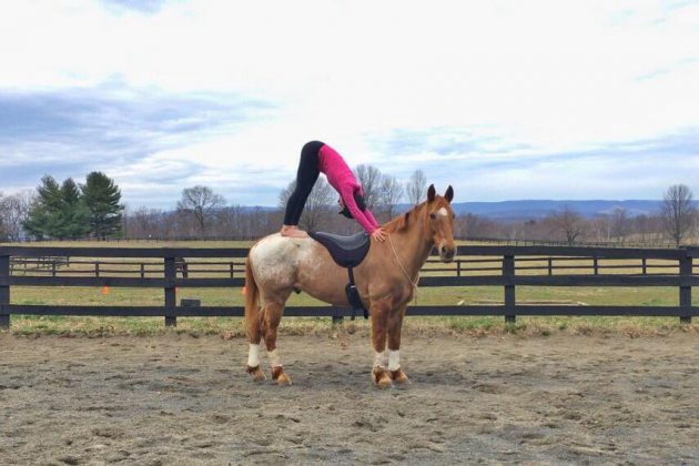 - “It’s fun to try, but be safe — I always wear a riding helmet while doing horse yoga