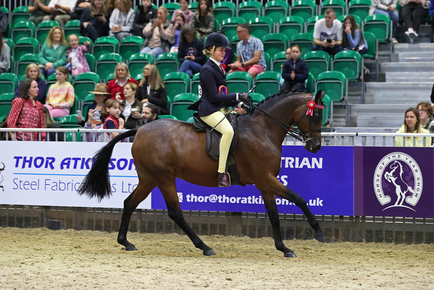 Grayson Brady Brooke and the 15-year-old lead rein of hunter type win HOYS for the second time, handled by Sarah Newbould.