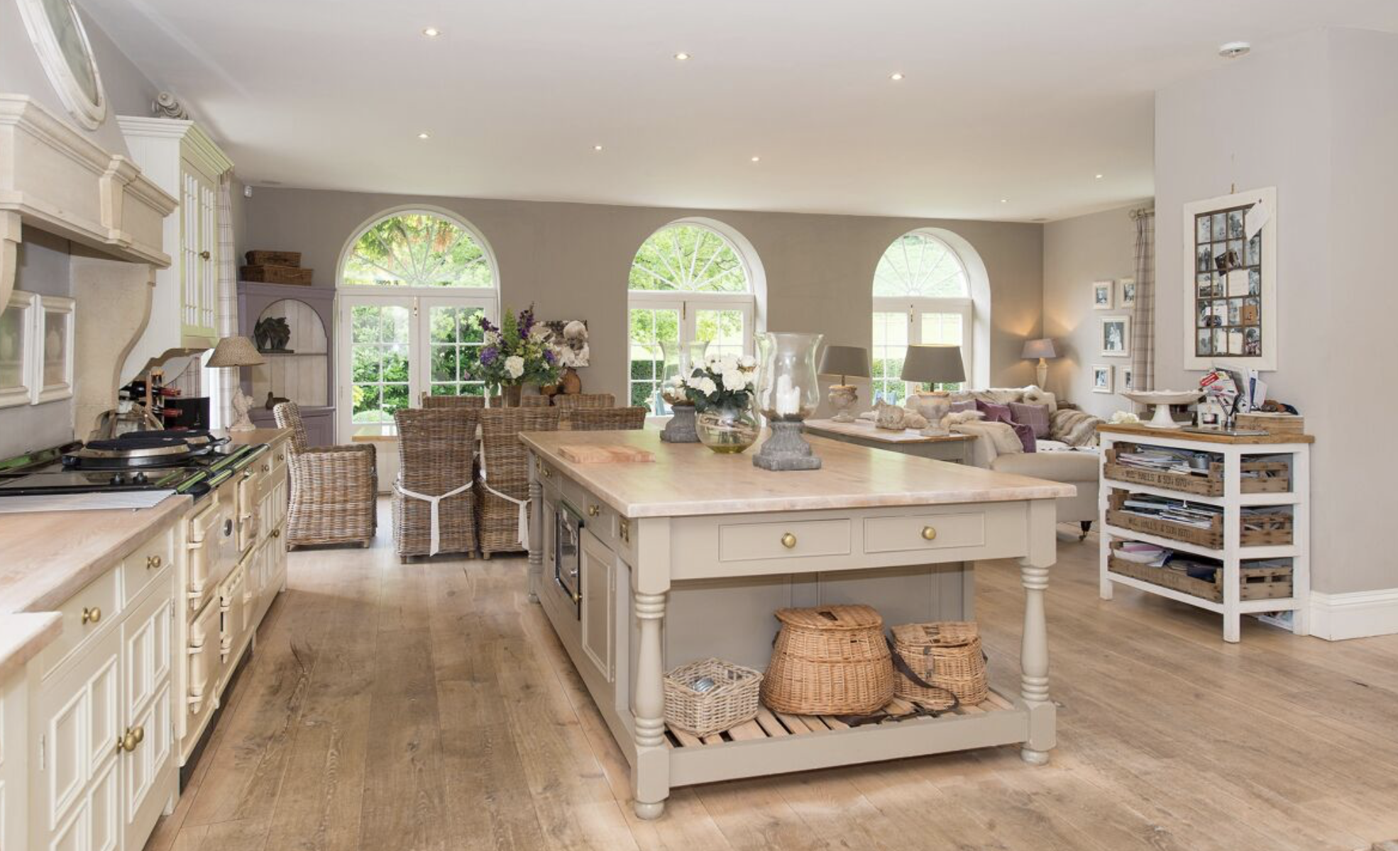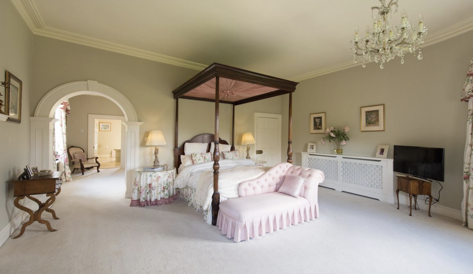 The approach to the house is a sweeping driveway that leads to a carriage drive and which continues down to the coach house, garaging and stables. There is also a lake, a summer house and an outside kitchen and reception room.