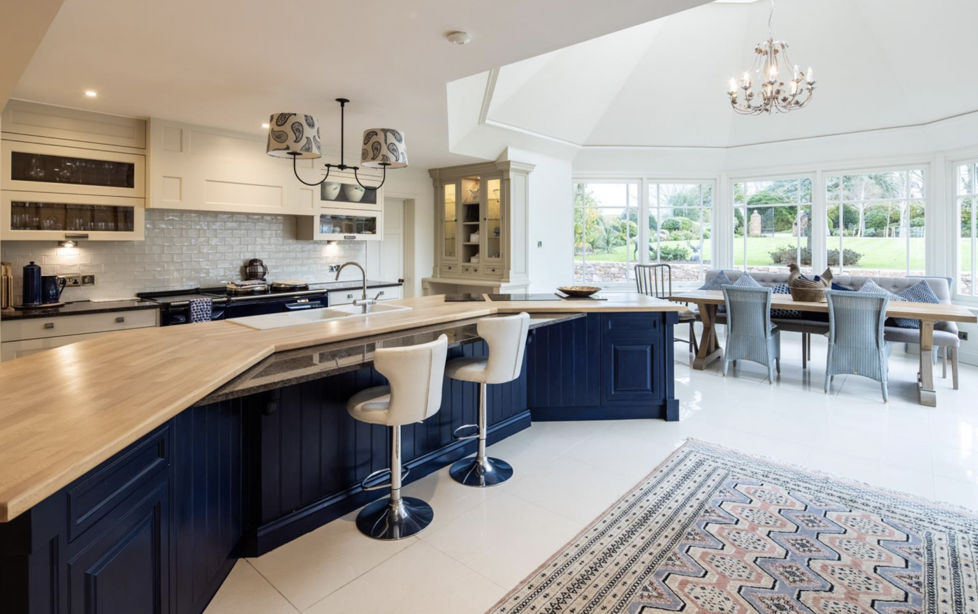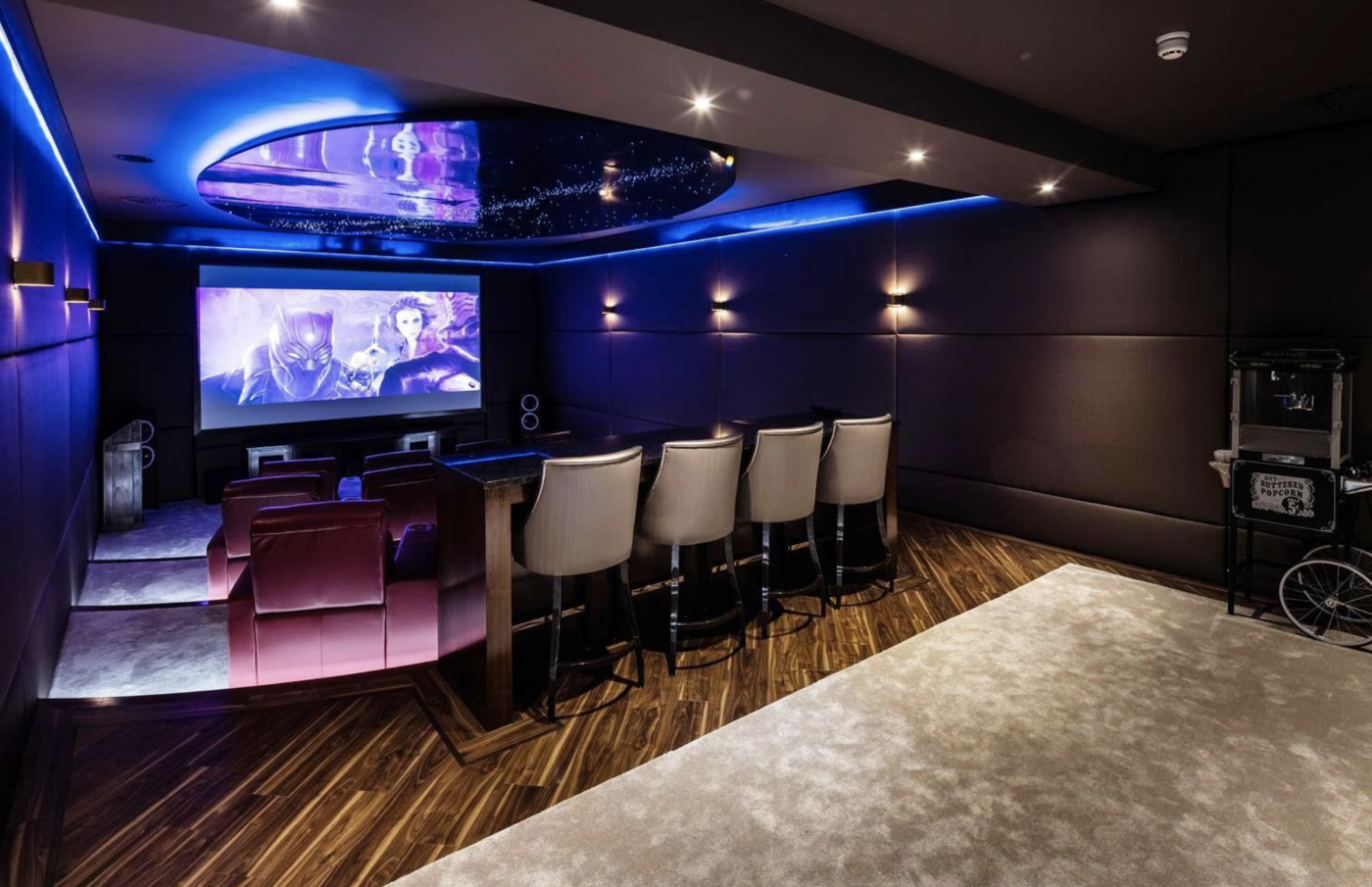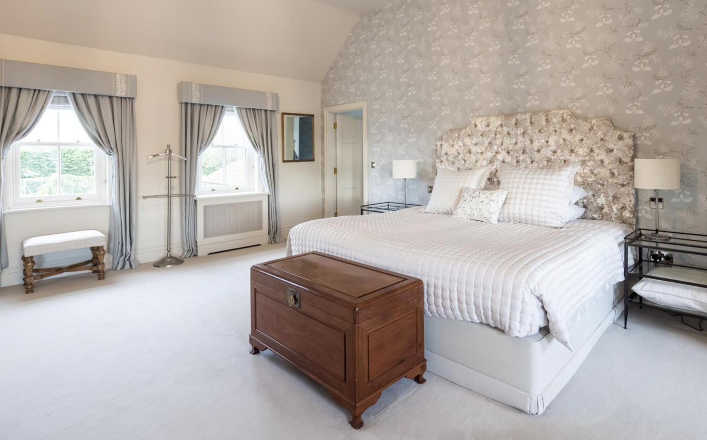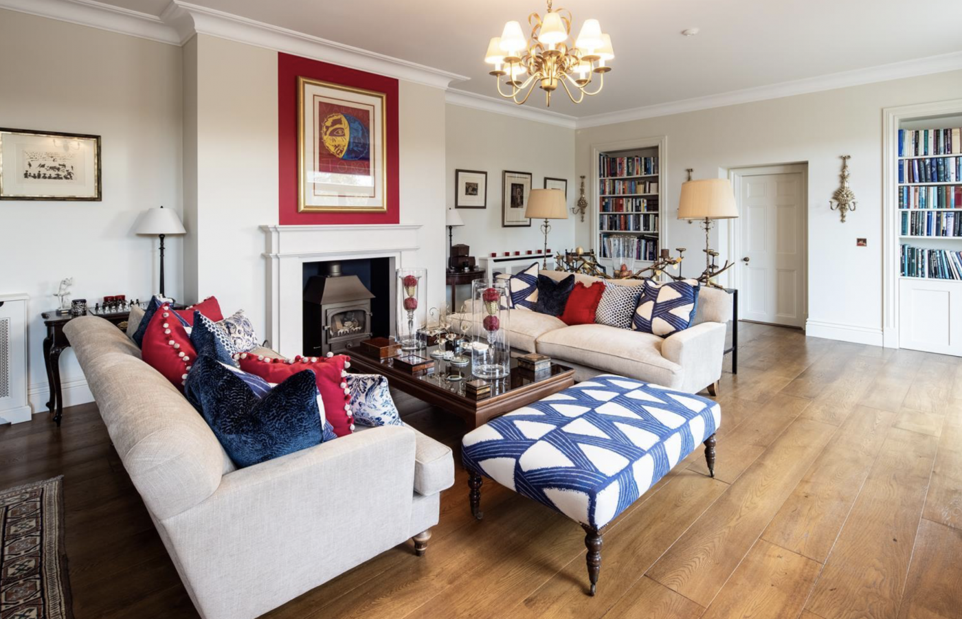 The main house provides four bedrooms, including a principal suite, an orangery, snug, drawing room, family kitchen, large utility and secondary kitchen, boot room, study, home office, a home cinema with seating for 14.