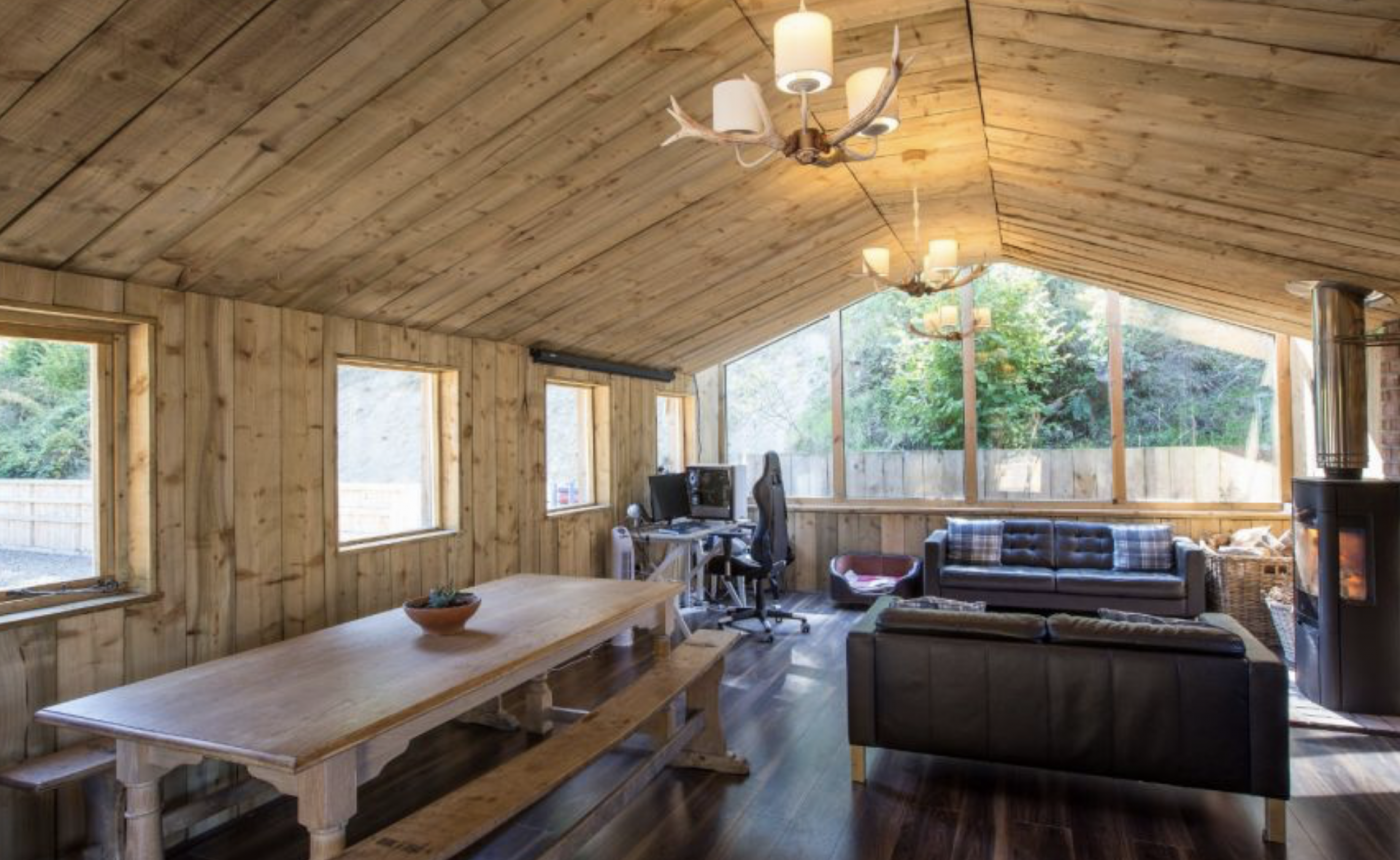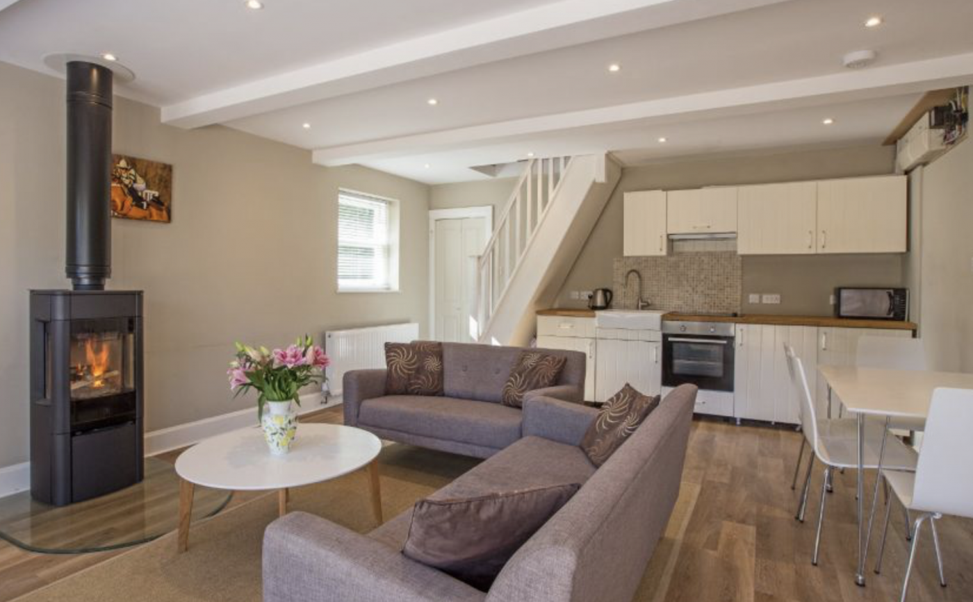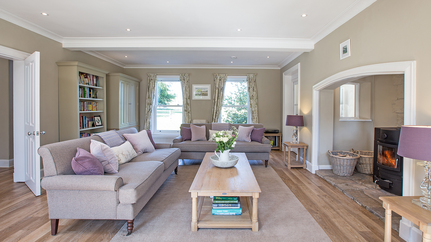 The sitting room is generously sized with a log burning stove and an adjoining games room.