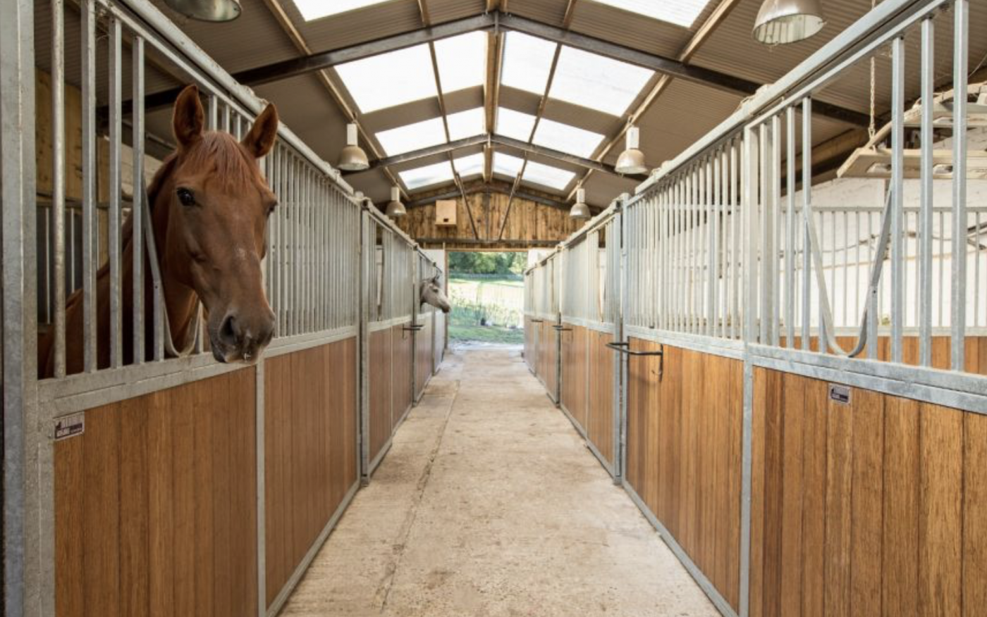 Leith House’s equestrian facilities include an internal barn set-up with nine stables and a tack room, plus an attached storage area. A timber-framed drying room has a log burning stove, seating area and shower room.