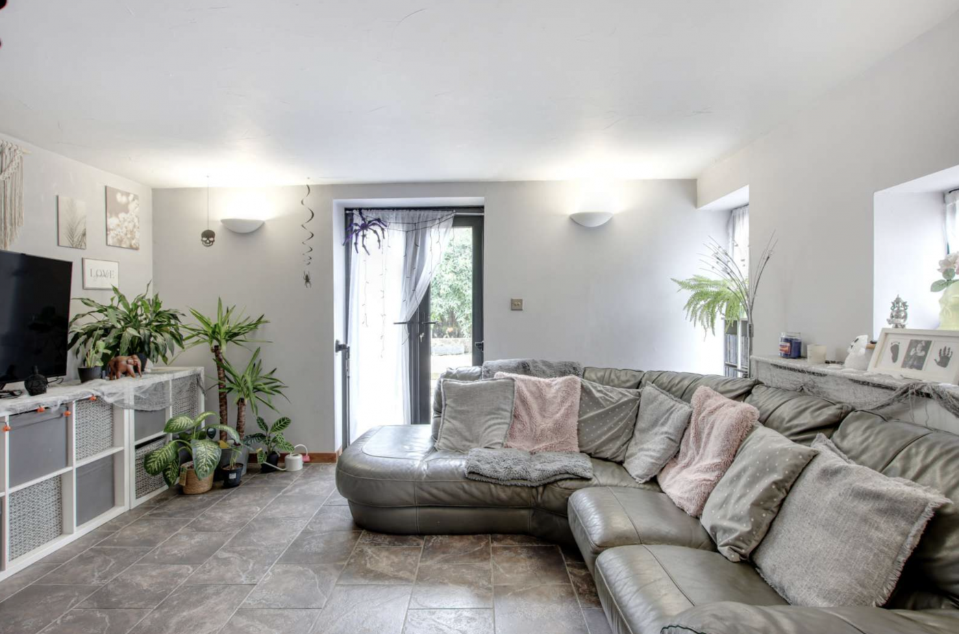 The outside space includes a well-established garden and polytunnel, and a pond.