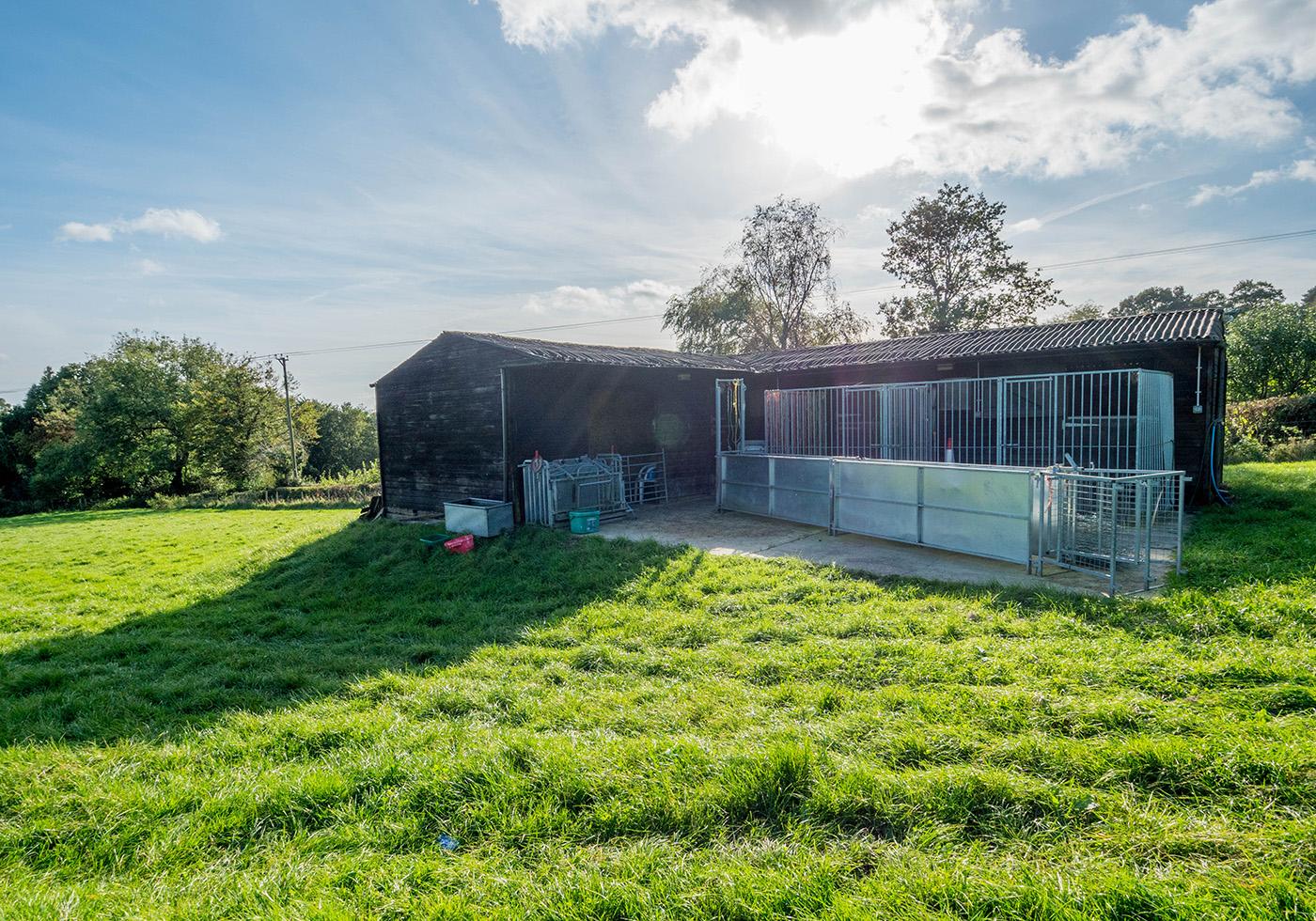 There is gated access to a stable block with hard-standing positioned adjacent to three interconnecting paddocks.