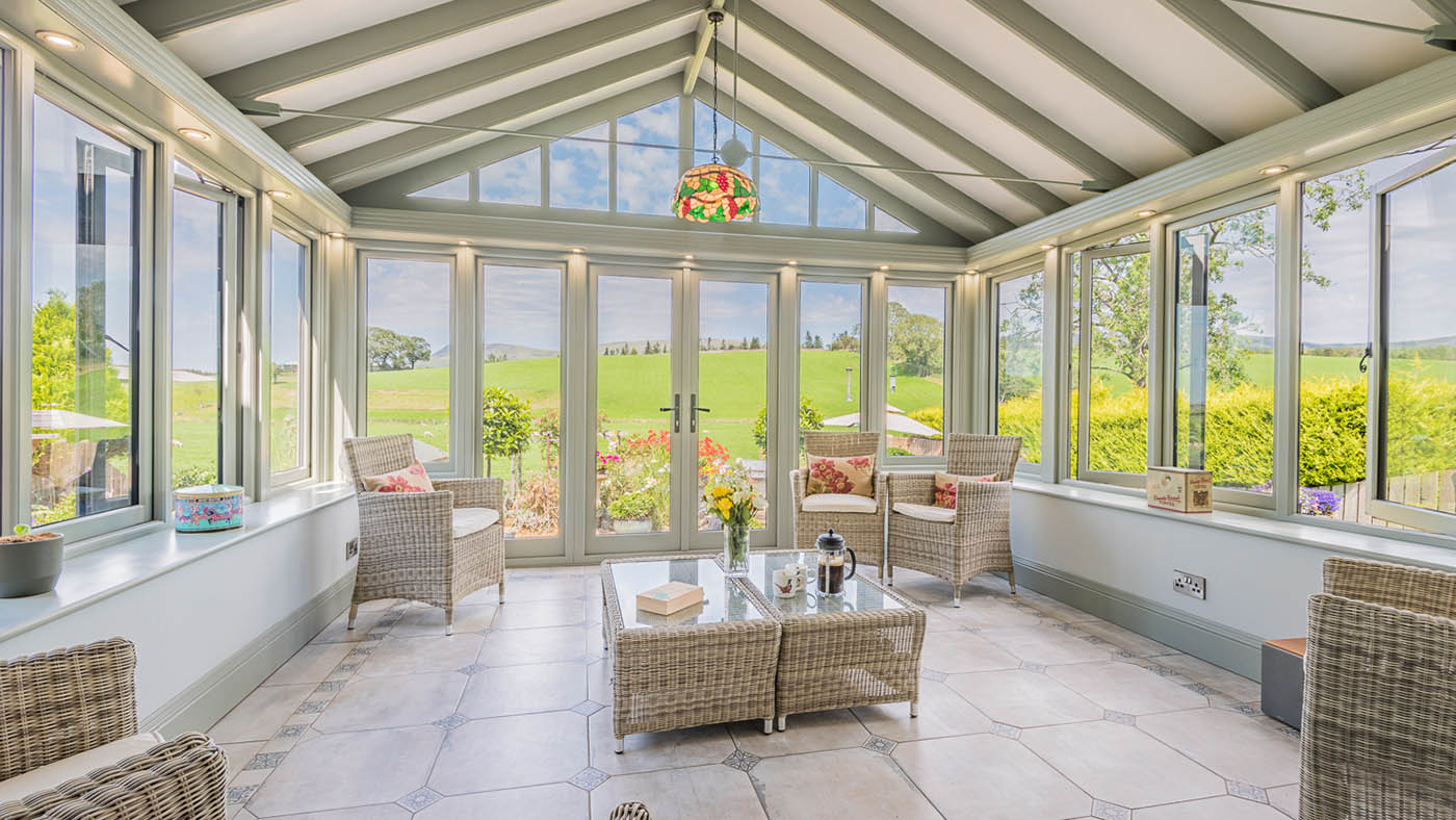 The living room boasts a stone fireplace and wood-burning stove, ideal for warming up on a chilly day. Plus there is a utility room, where any wet riding gear can be sorted. For moments relaxing away from the horses, there is a lovely conservatory overlooking the garden, with a lawn and established shrubs, plus a seating area — ideal for alfresco dining and entertaining friends and family.