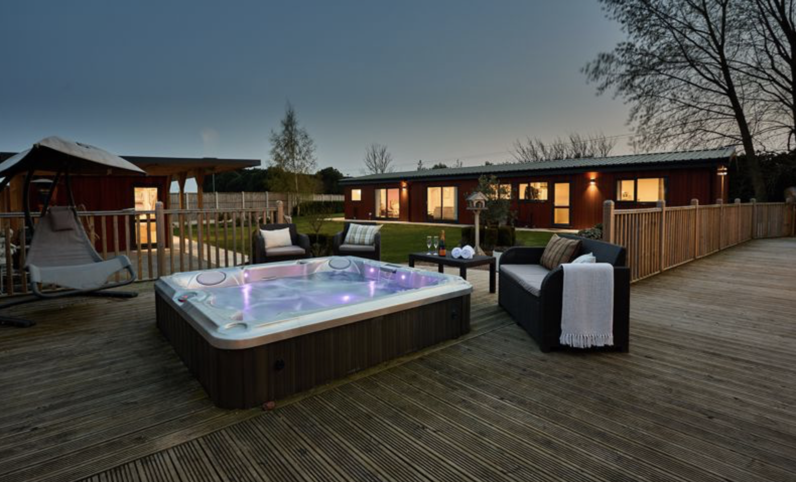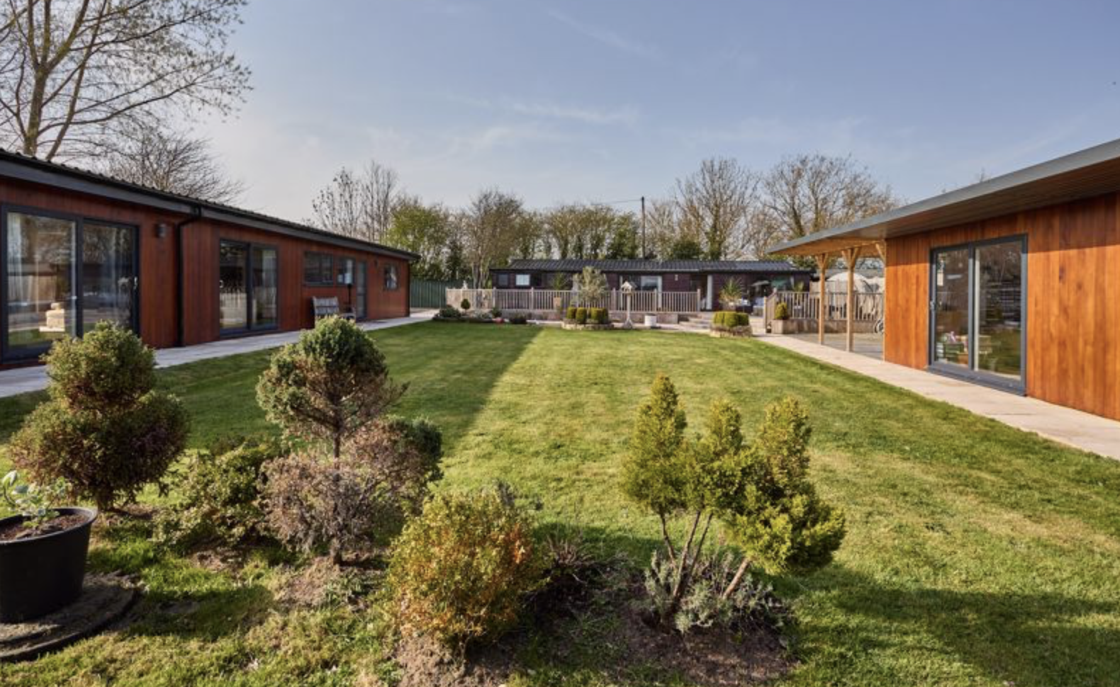 There are two purpose-built, chalet style homes set within a private lawned garden for whoever decides to purchase this set-up. This private area features a raised decking area housing a sunken hot tub and a patio with a wooden gazebo structure.
