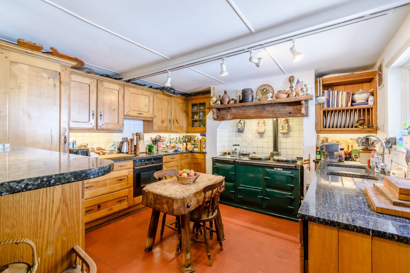 The kitchen/breakfast room features bespoke wooden units, granite worktops and an Aga. There is also access to a separate walk-in larder.