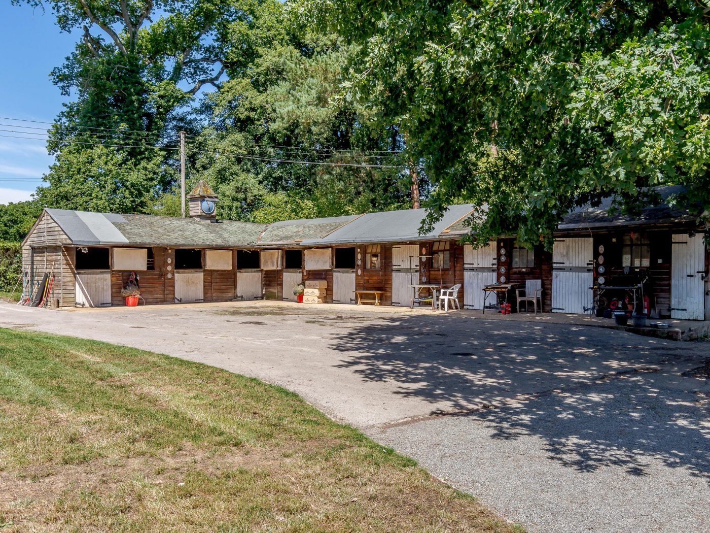 There is a large timber framed stable block with eight stables and a tack room, plus a sand school and tarmac courtyard with plenty of space for parking.