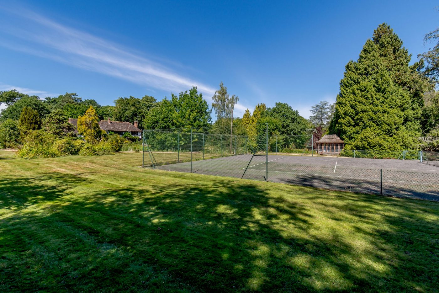 Approached via a long private driveway, Marelands Farm is set in beautiful grounds of just under four acres. The gardens feature mature trees, a summer house and a tennis court.