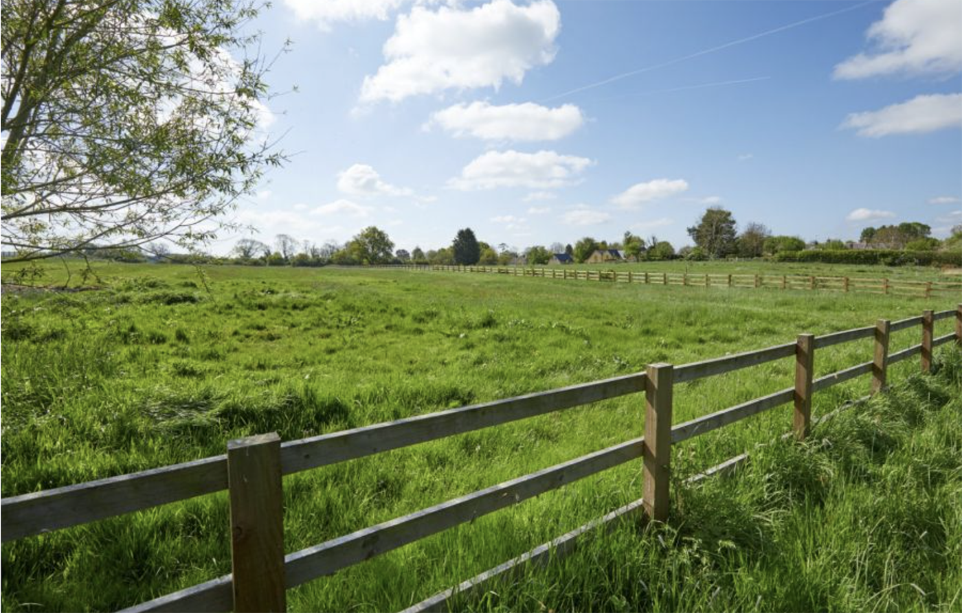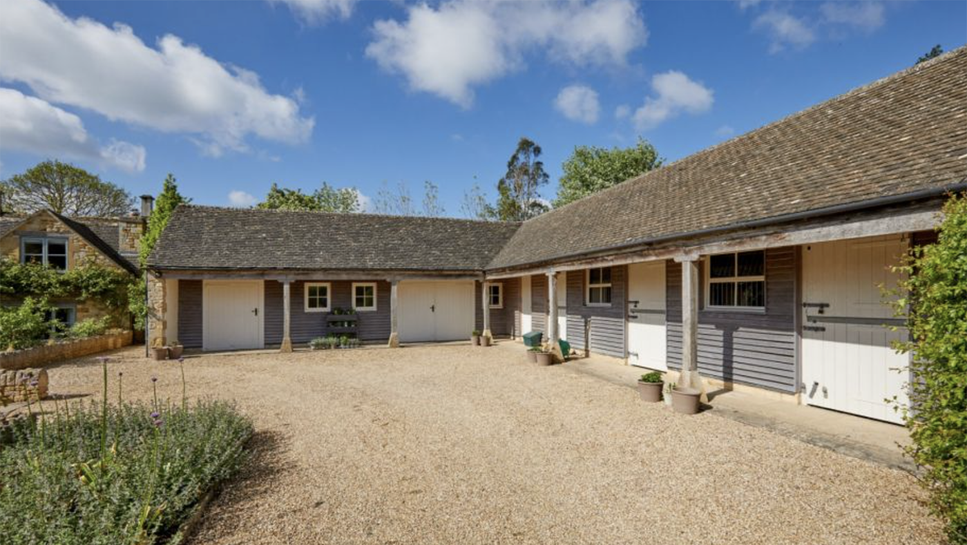 The outbuildings include a double car port with enclosed garage to the side with one-bedroom flat above. Beyond this is an L-shaped stable block with four stables, mess room, tractor store and yoga studio/home office.