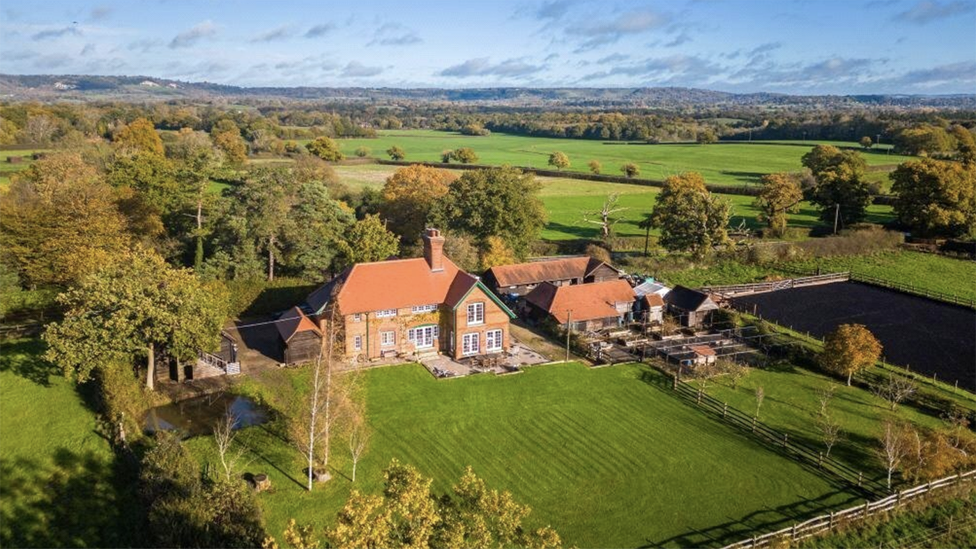The grounds are a prime feature of the property and included in the 9.1 acres of land are several fenced paddocks. The home also sits in an elevated position and enjoys stunning views to the east towards Box Hill and the North Downs and to the west towards Leith Hill and the Surrey Hills.
