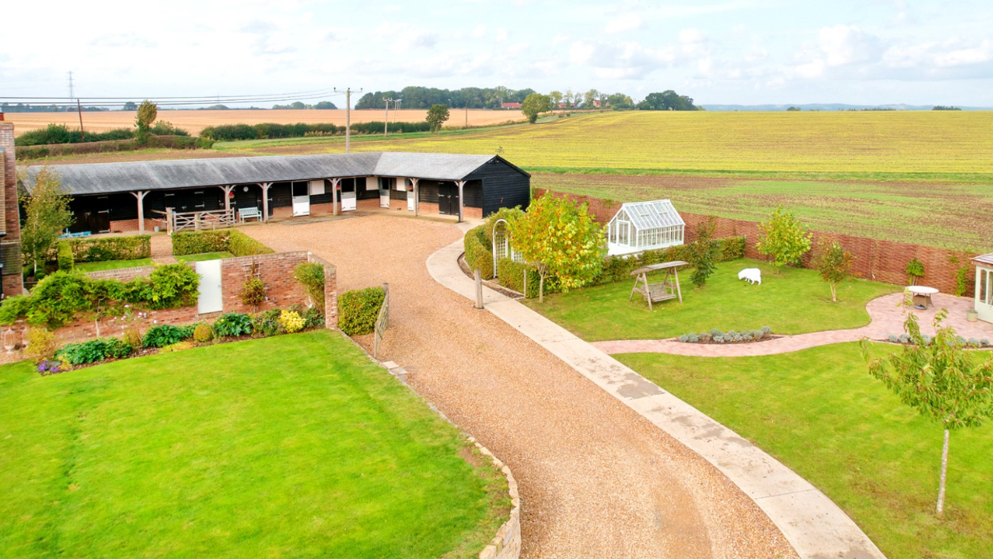 The timber outbuildings are constructed by Ashcroft and have featherboard elevations. Within them are four stables, a hay barn, an additional store, a feed room and a tack room with plumbing for a washing machine.