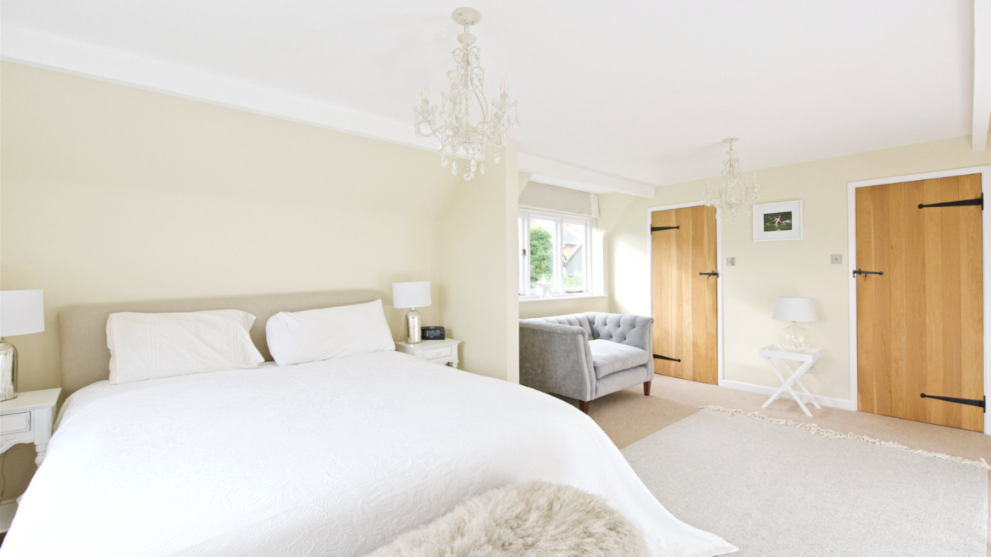 There are bi-fold doors leading to the garden and there’s a family room off the dining area. Additional rooms on the ground floor include a utility, a study and a W/C.