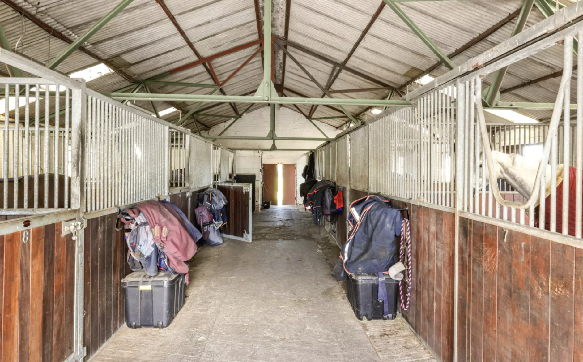 The yard includes a range of outbuildings that includes a four-box purpose-built stable block, an all-weather turnout paddock, an American style barn with eight Monarch stables, a wash bay, a secure tack room and feed space.