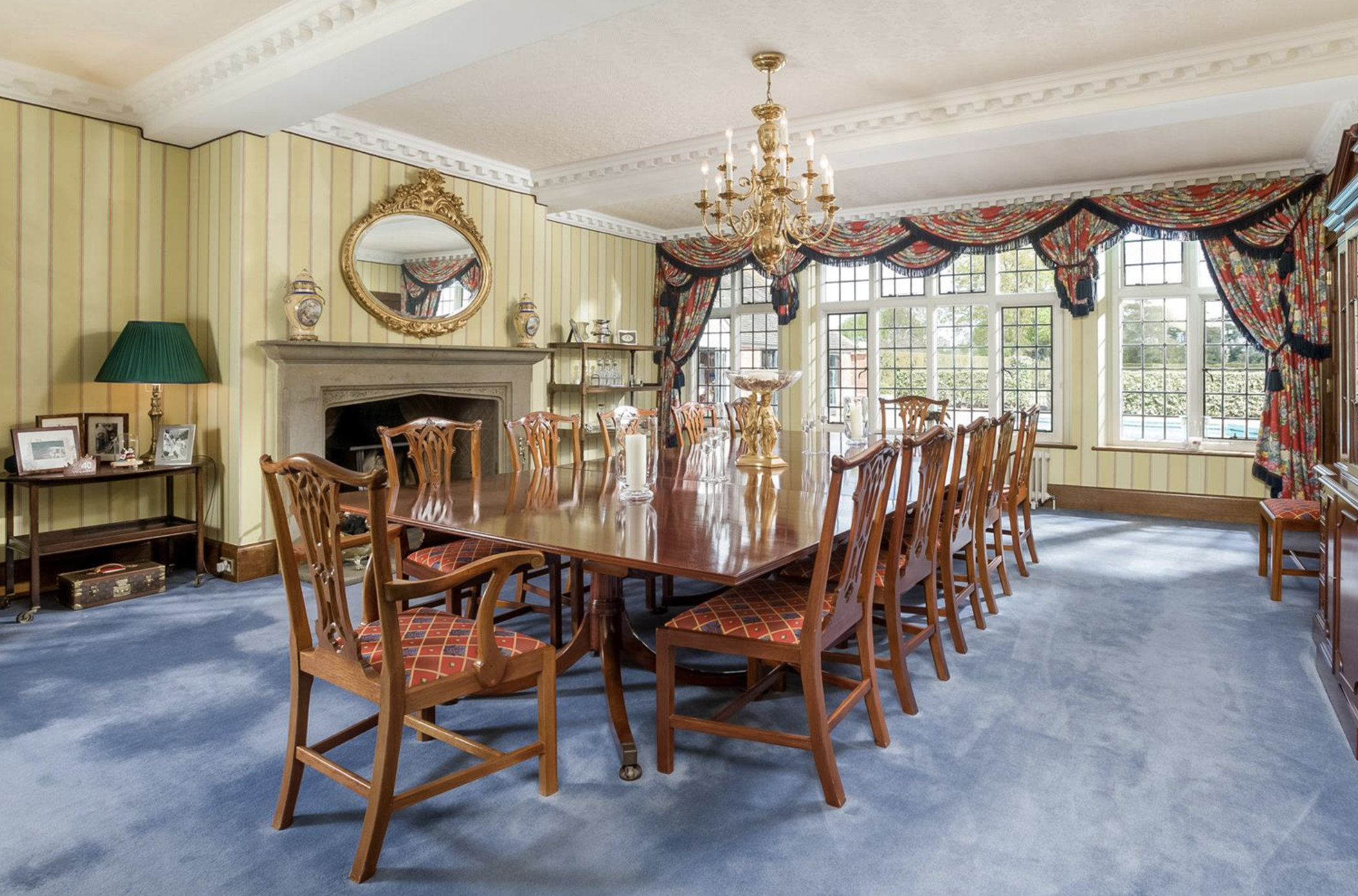 There is a large reception room with open fireplace, oak panelled walls and access to the rear gardens. Adjoining the reception room is a drawing room with attached garden room.