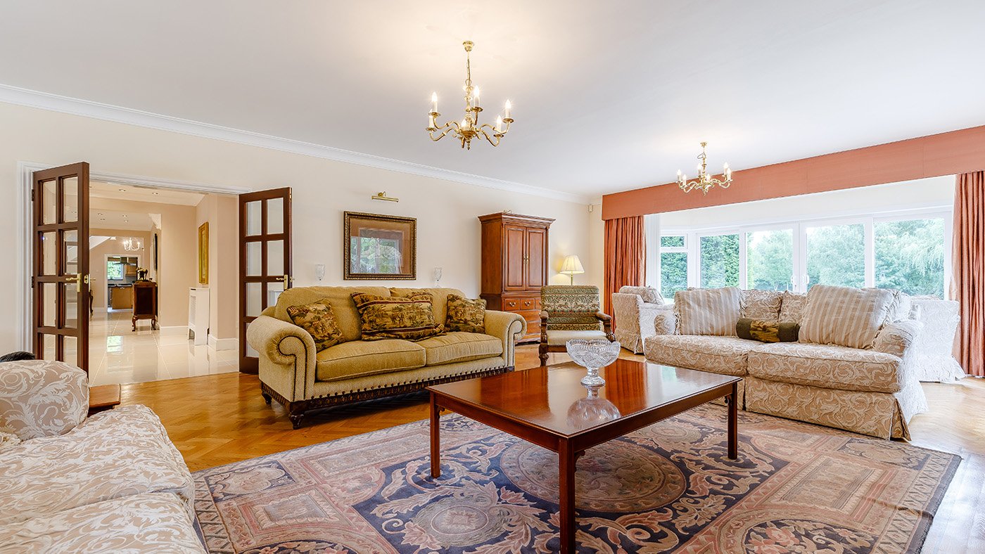 Inside, there is a reception hall with a feature staircase, a large formal dining room with dual aspect windows and a spacious lounge. There is also a home gym and further office space.