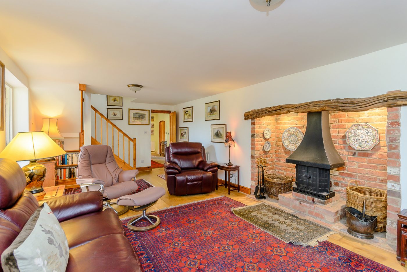 There is a cosy sitting room with space for lots of seating. It also has a log burner and a door to the study.