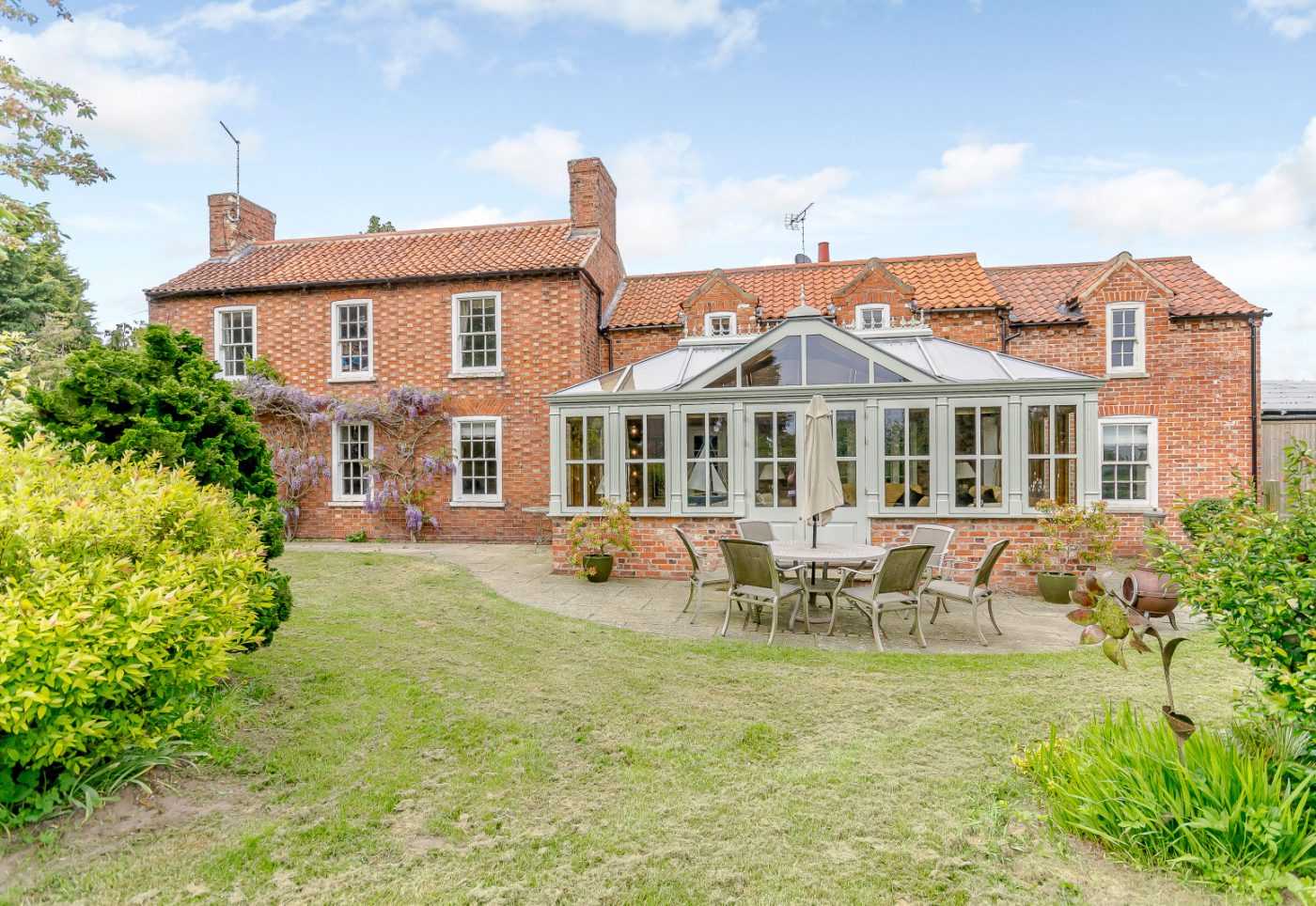 The home is very ‘country chic’ and is built out of striking red brick. It has four bedrooms as well as an impressive conservatory and some lovely lawns with shrubs and hedges.