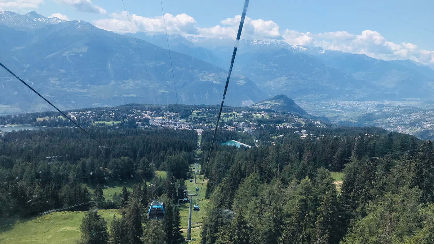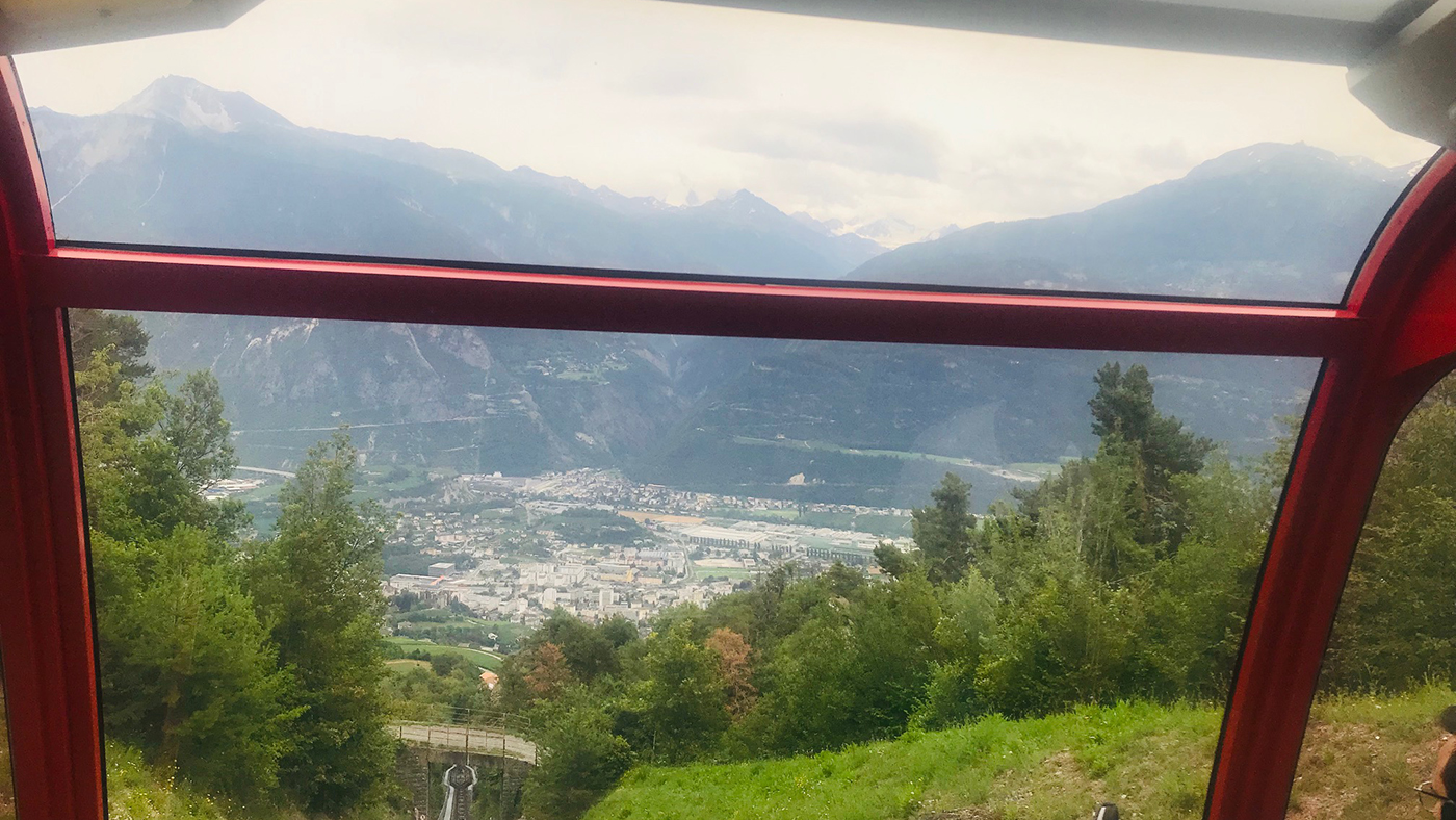 While the horses make their way up the mountain in horseboxes along the the winding roads, spectators can take the train to “Mountain Gare” — the station in Crans-Montana — which takes about 20 minutes up a steep incline from the town of Sierre at the bottom of the mountain. While offering wonderful views of the valley and mountains, it is not one for those with a fear of heights…