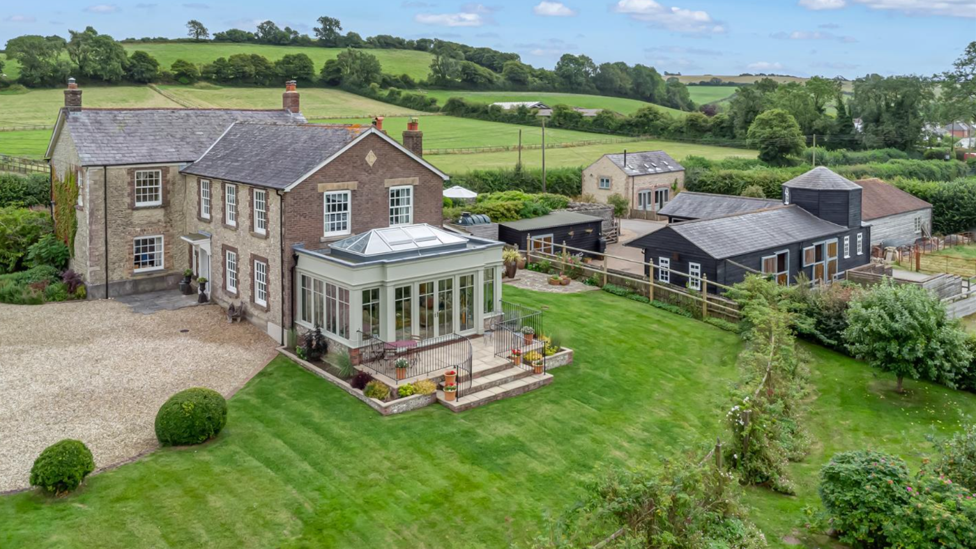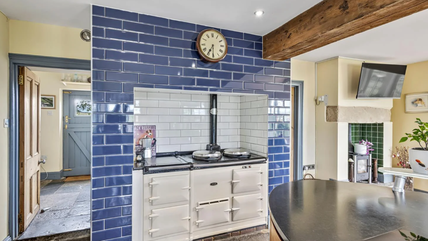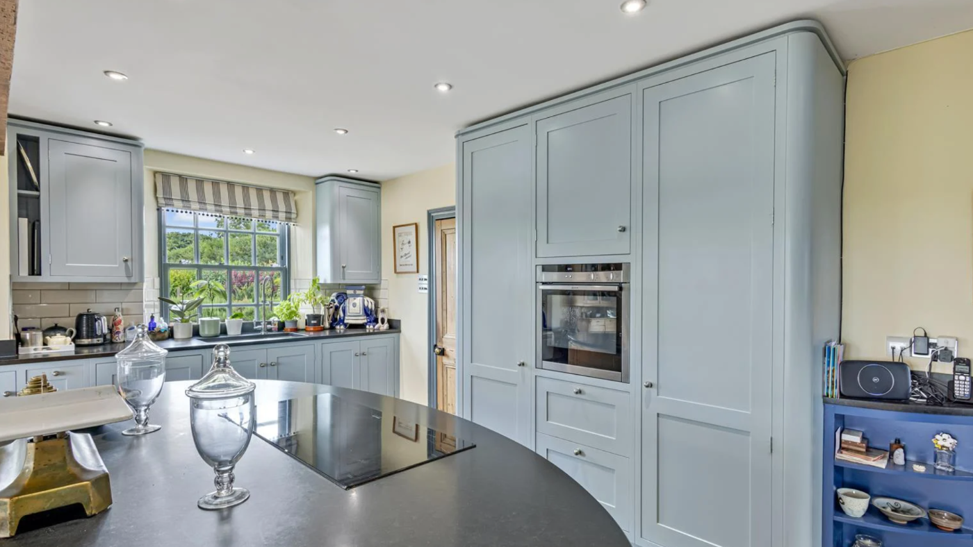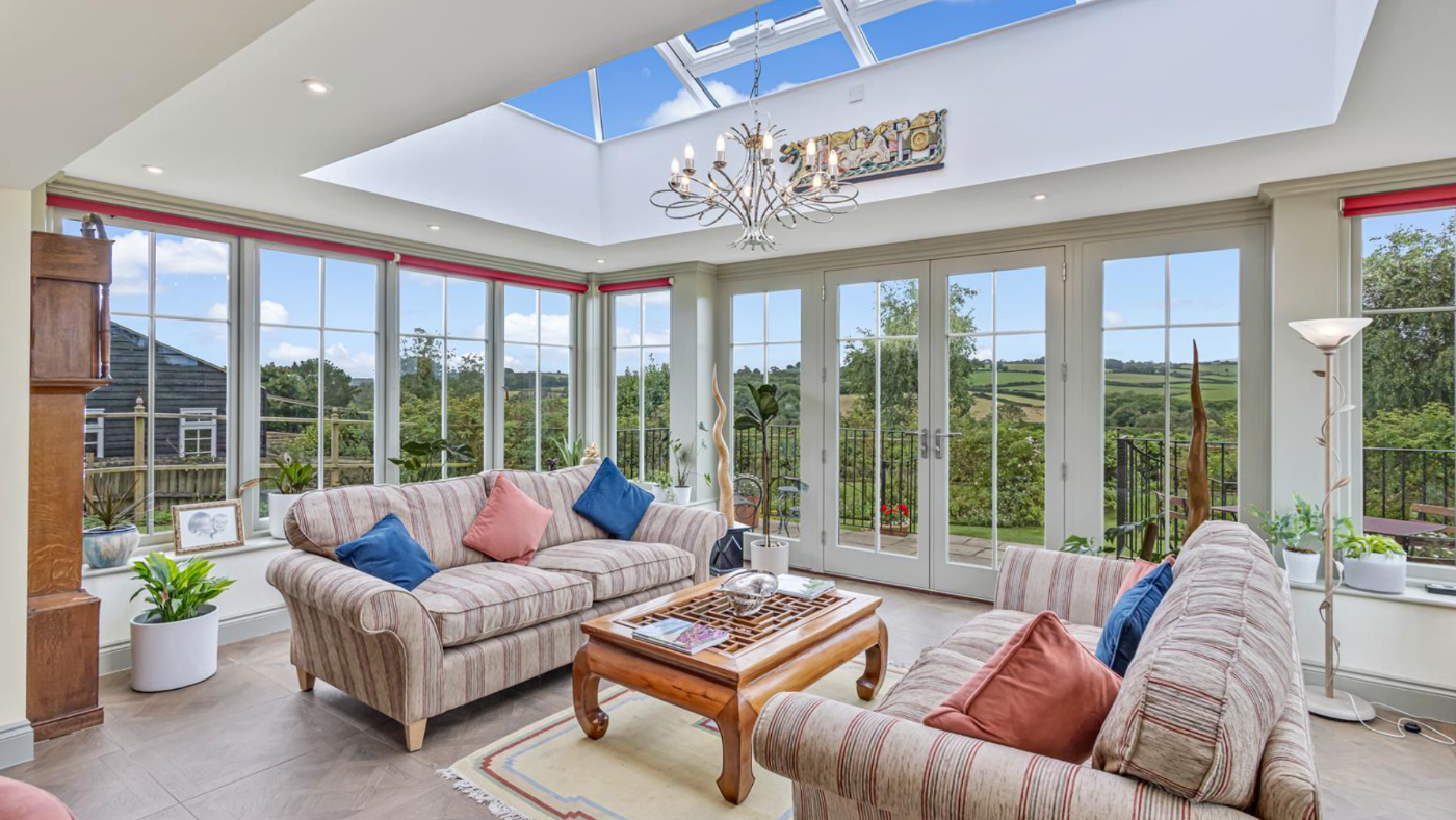 At the centre of the home, find the open-plan kitchen leading to the orangery. There’s a four-oven aga along with a dining and living area.