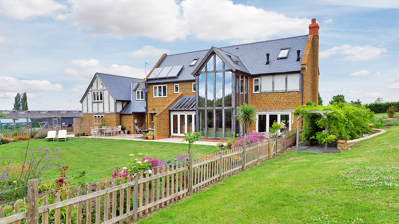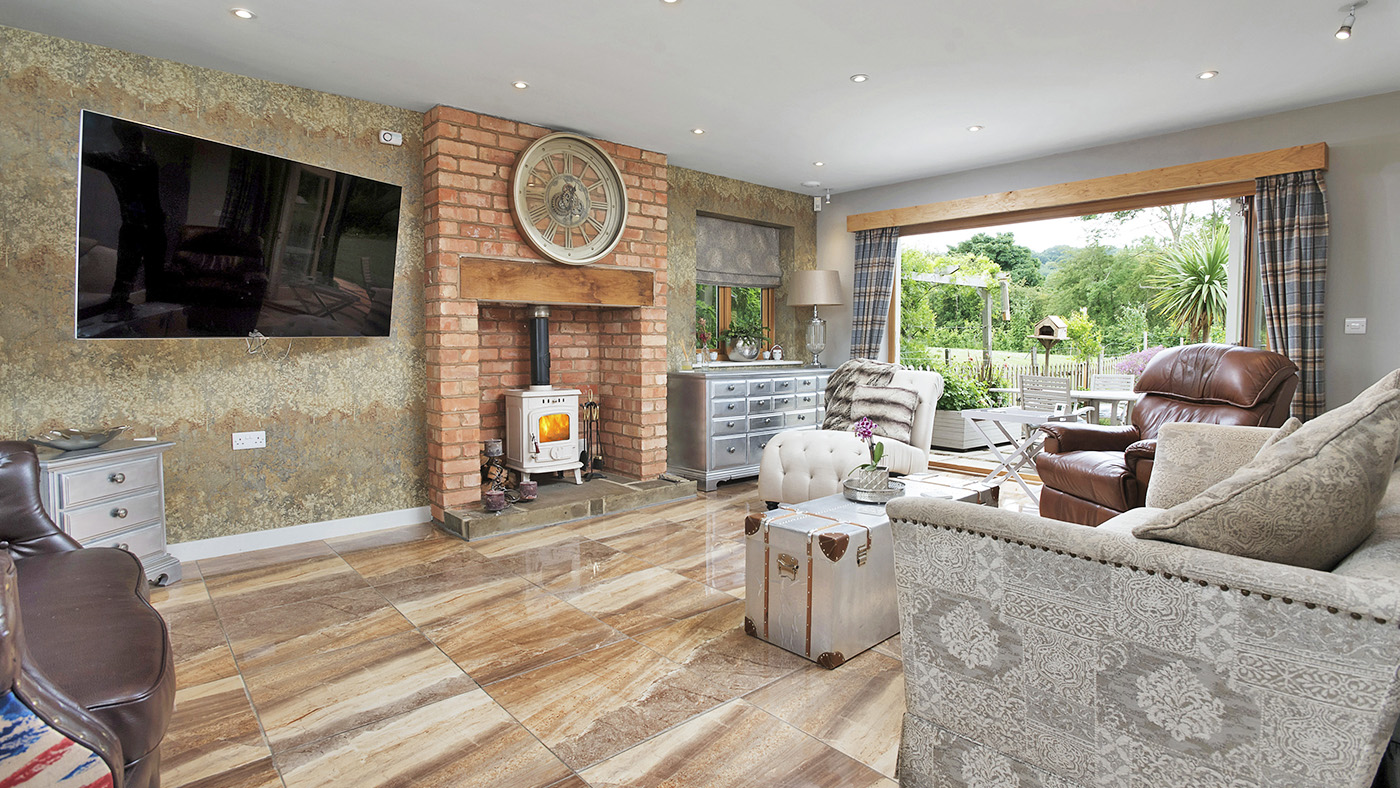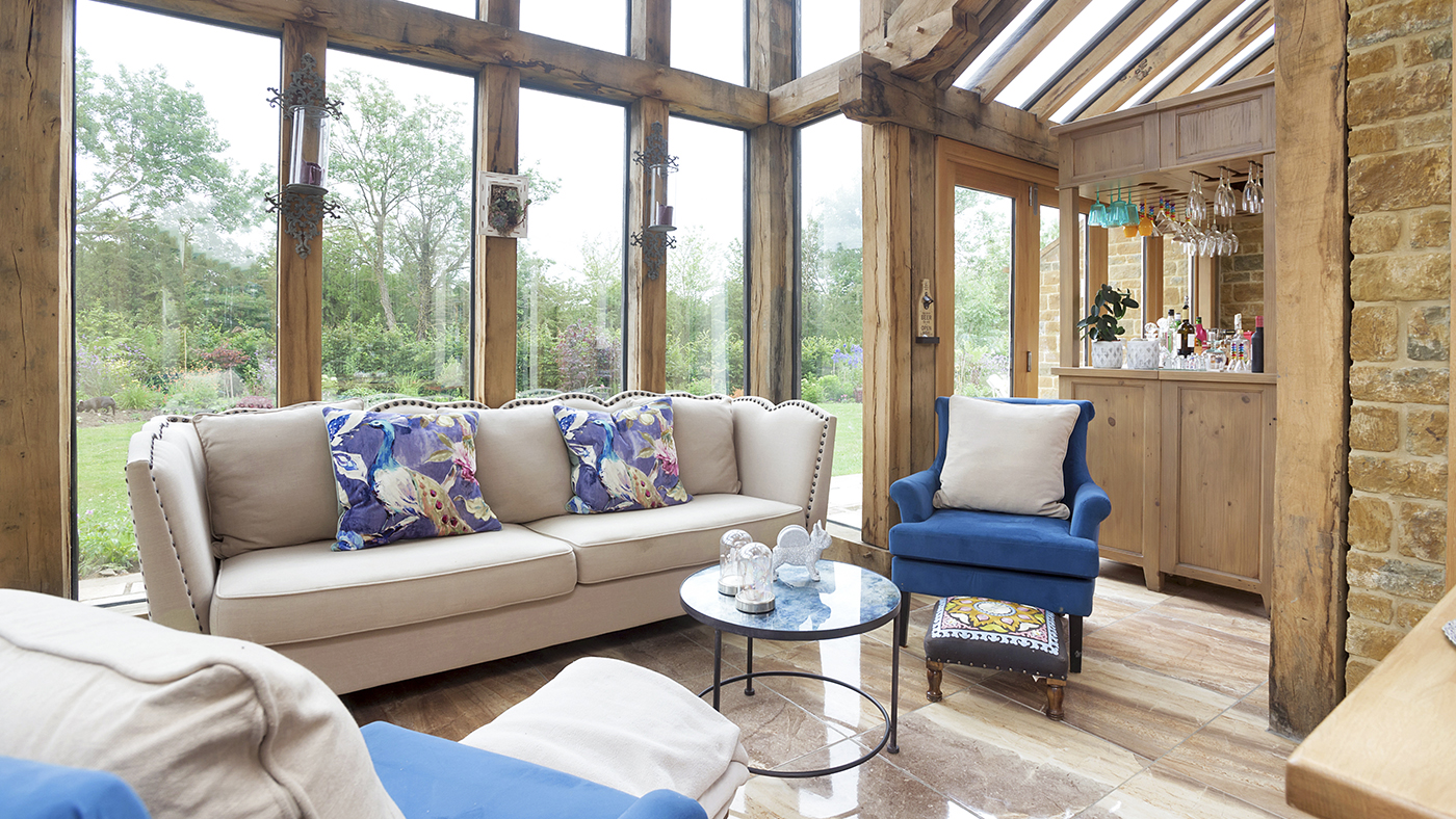 Located down a gated driveway, the main house has been constructed from a mix of local ironstone, brick and oak, offering a perfect open-plan family living space and making the most of the natural light.