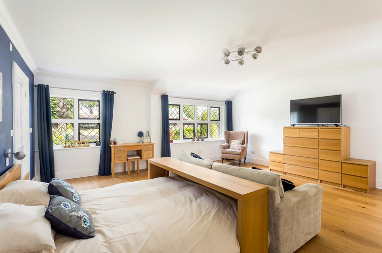 There are five bedrooms, all served with en-suite bathrooms. The main bedroom also offers a programmable jacuzzi bath and TV, and walk-in wardrobes.