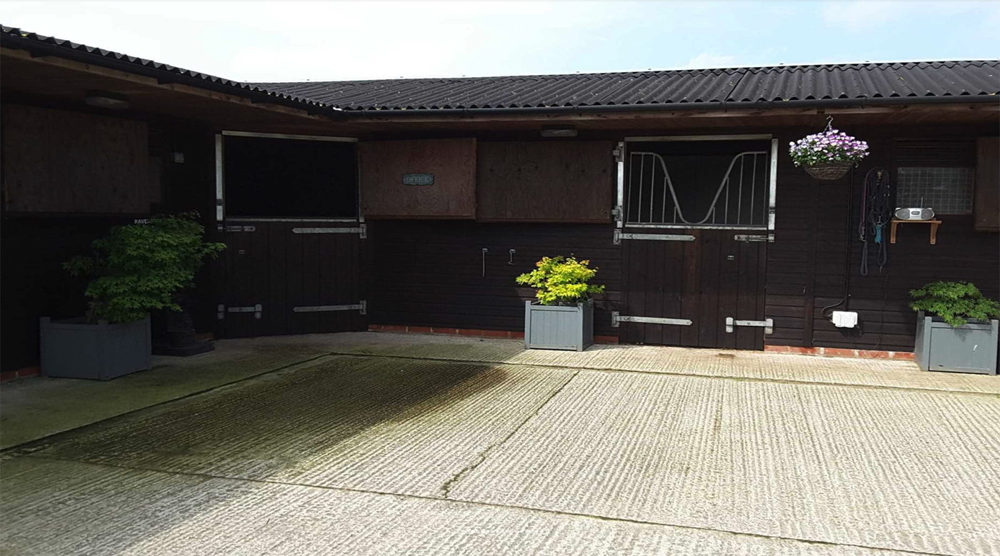 There are five stables which are set around a concrete yard. One of the boxes is a large foaling box.
