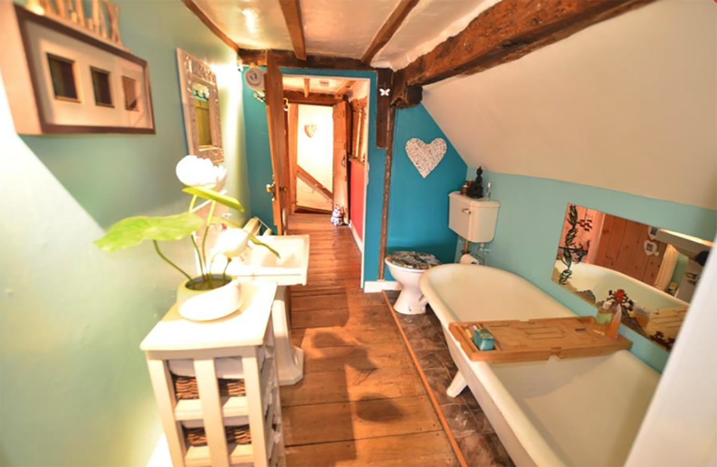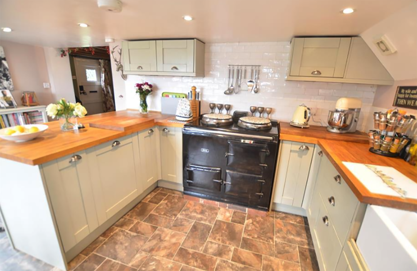The exposed wooden beams are just one feature of the home which give it a cosy, country feel.