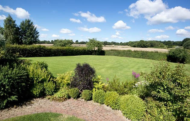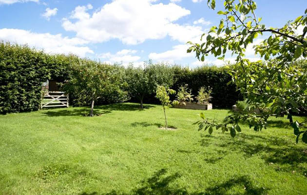 There is a vegetable garden which features a number of brick-edged beds, fruit trees, a garden shed, greenhouse and a wooden Wendy House.