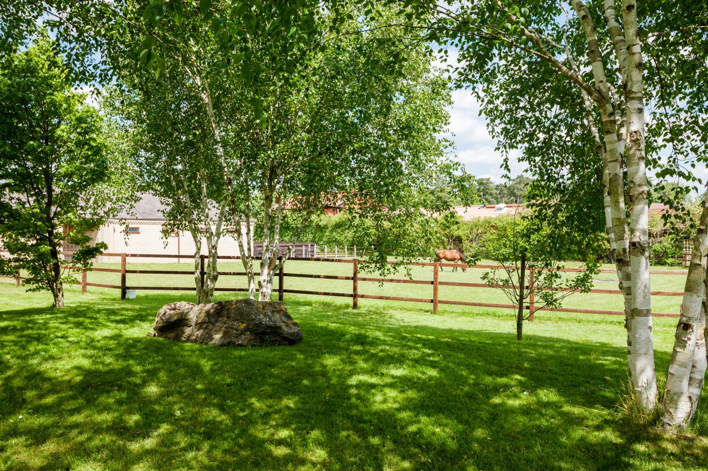 Seven Springs is set well back off Hamilton Road and is approached through a pair of wooden gates. In all the grounds totals 2.22 acres and include a turnout paddock and lungeing ring. The yard also adjoins the Hamilton Hill training gallops.