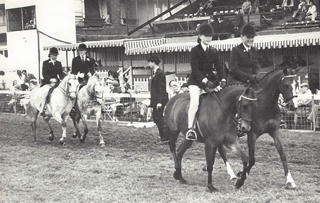 A strong 13.2hh Show Pony line up at The Royal Show in 1964. From L-R: Pollyanna and Ally Patterson; Cusop Felicity and Suzanne Eckley; China Tea and Joyce Newbery; True Love and Judy Bradwell.
