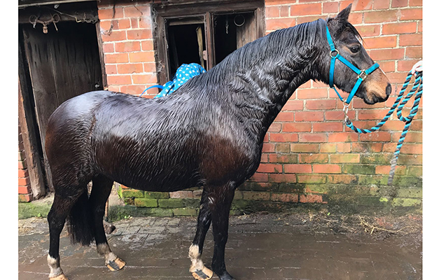 “This is Corkhills Cello aka Frank. He’s a lovely Welsh Section B gelding. Frank had been turned out all winter and had turned into a wild mud monster. Enough was enough and he needed a good scrub. Under all that grub I discovered a beauty! He’s got the most amazing summer coat now.” — Chloe Phillips Gray