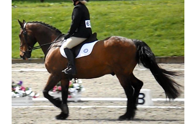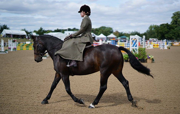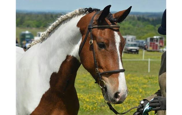 “This is my 21-year-old Bizzie B. She lives out 24/7 and loves to roll! I got her in ready to go and do a side saddle display with the Side Saddle Association area 14 team last year at Hartpury. The coating of mud and dust was pretty impressive but she scrubs up well. Just lots of elbow grease to get the dust out and lots of thread for my plaits!” — Jackie Banks